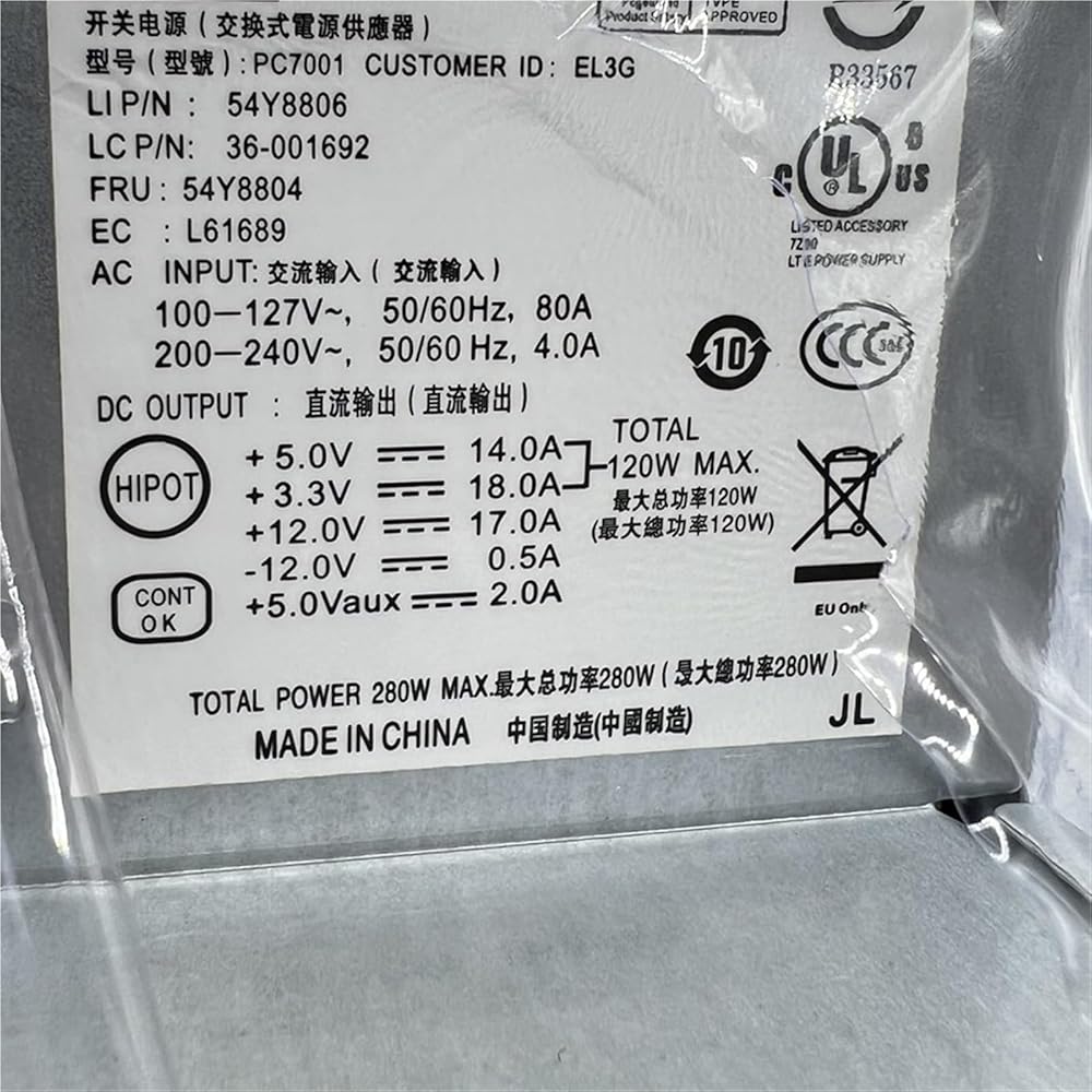 For M57 M58 280W Power Supply FRU 54Y8804 54Y8806 41A9701 41A9717 PC7001 PS-5281-01VF 24PIN+4PIN