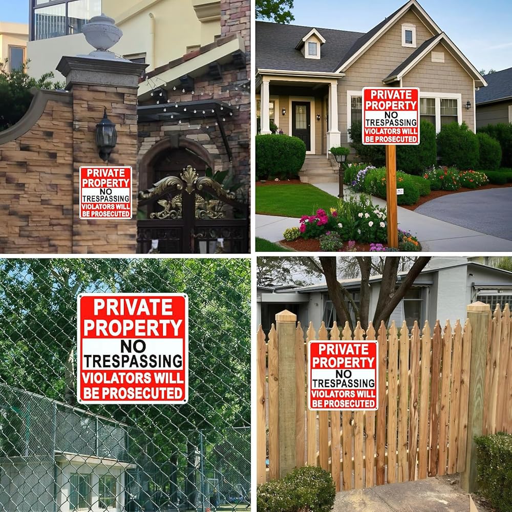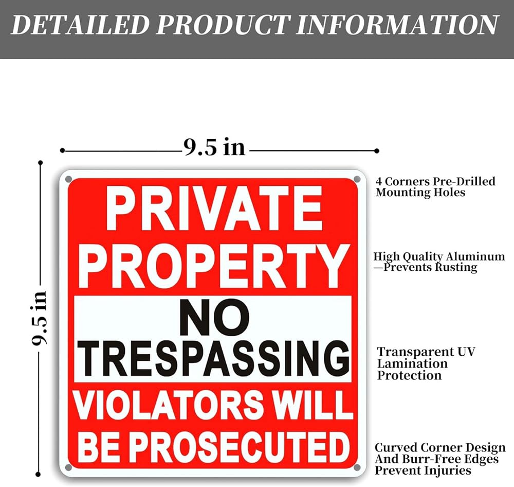 4 حزمة كبيرة لا توجد علامات على ممتلكات ممتلكات خاصة ، 9.5 بوصة × 9.5 بوصة علامة معدنية خاصة ، الألومنيوم المقاوم للصدأ ، مع مادة عاكسة ، متينة ، مقاومة للطقس ، سهلة التثبيت