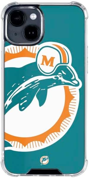 Skinit Clear Phone Case متوافق مع iPhone 15 - تصميم شعار NFL Miami Dolphins المرخص رسميًا