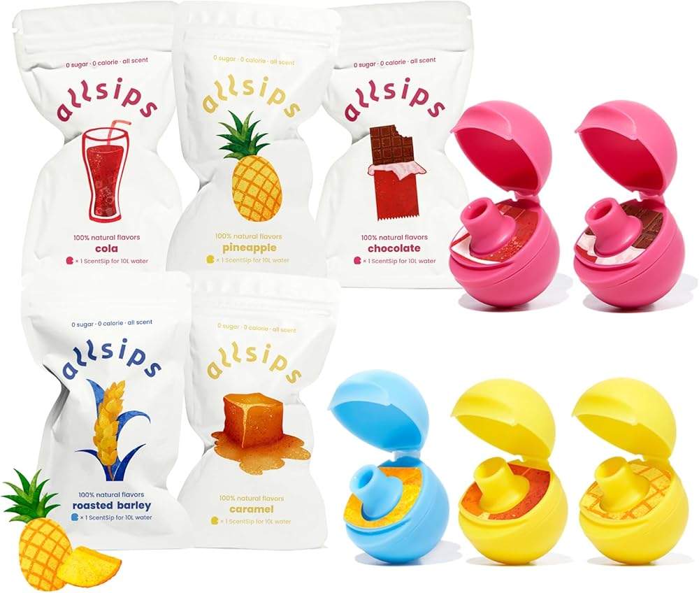 • كل نكهات Scentsips Pod ما يصل إلى 6 لترات من الماء ، أو حوالي 6 عبوات من زجاجة 32 أوقية. عزز المشروبات عن طريق إضافة العصير أو الحليب أو غيرها من السوائل. على سبيل المثال ، أضف الحليب واستخدم جرابًا بنكهة القهوة لإنشاء "الذوق" اللذيذ مثل latte.experiment مع مجموعات مختلفة للنكهات الجديدة المثيرة.