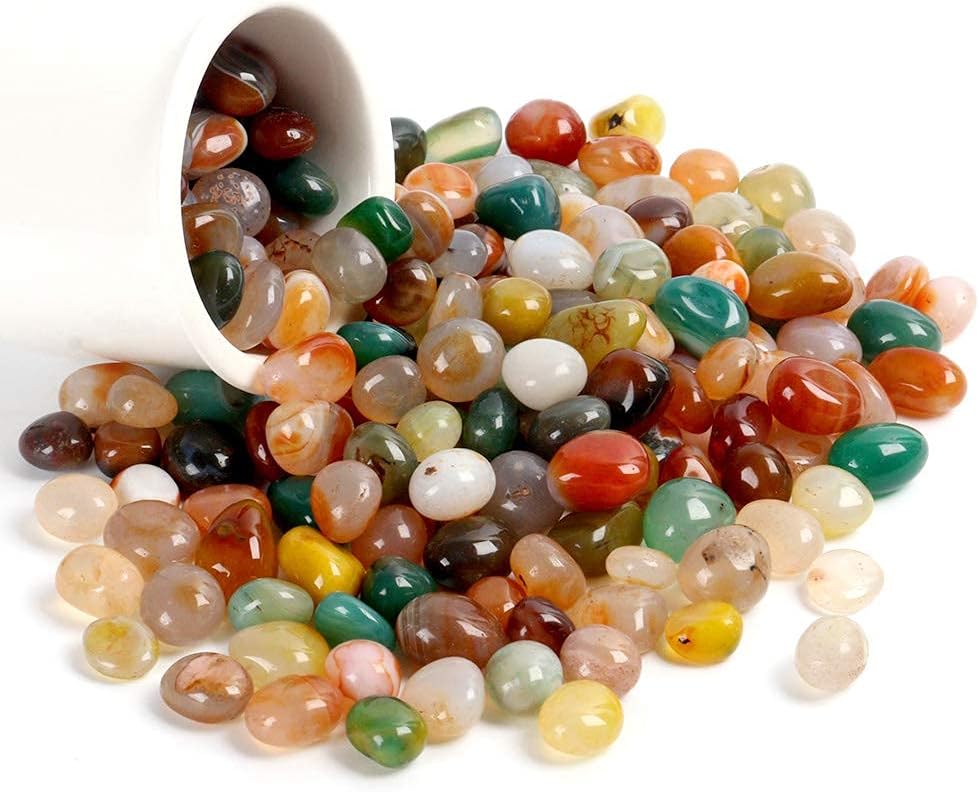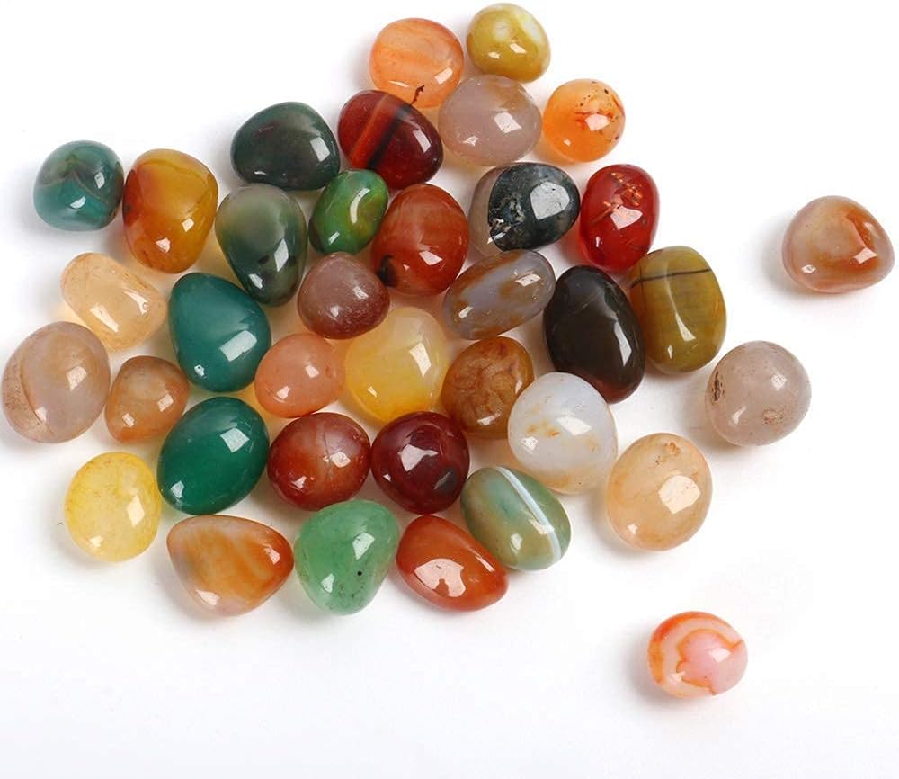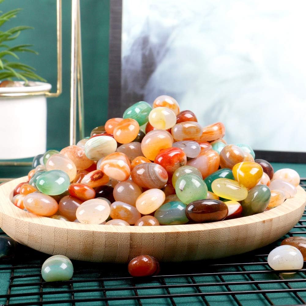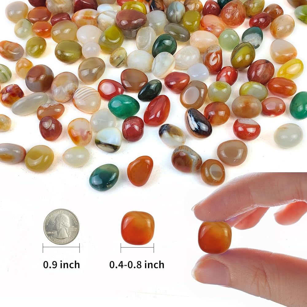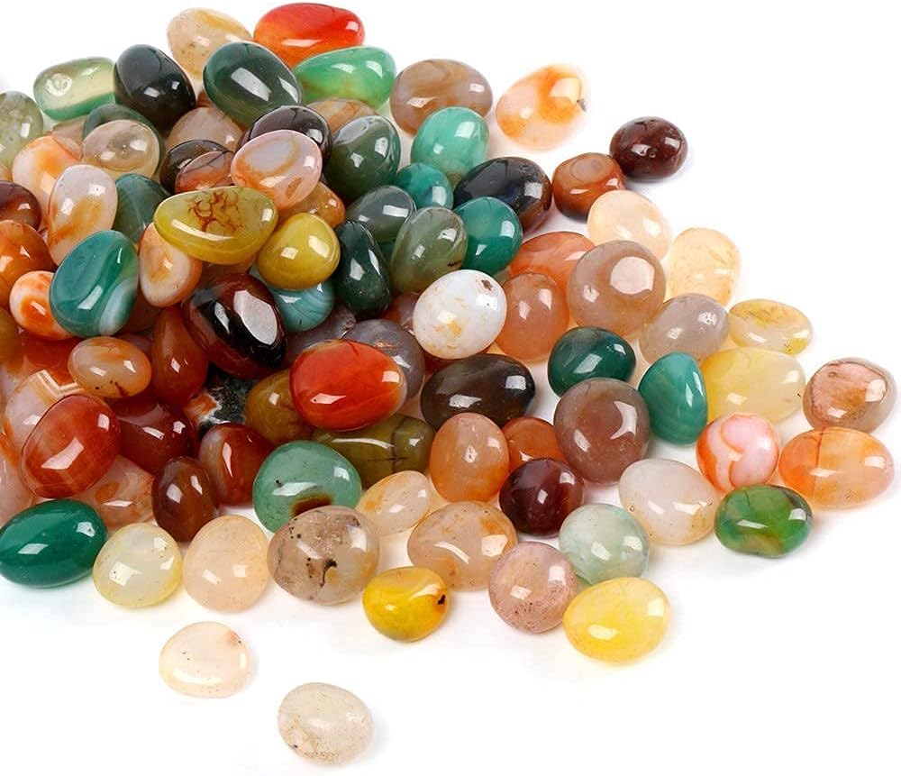 【ألوان وأنماط فريدة من نوعها】 - حجر العقيق الملون الخاص بنا يشبه الكهرمان، والأحجار الملونة المختارة يدويًا. أحجار العقيق هذه ناعمة ومستديرة، وتختلف أنماطها في خمس طرق. لا يوجد حجر عقيق مطابق تمامًا.