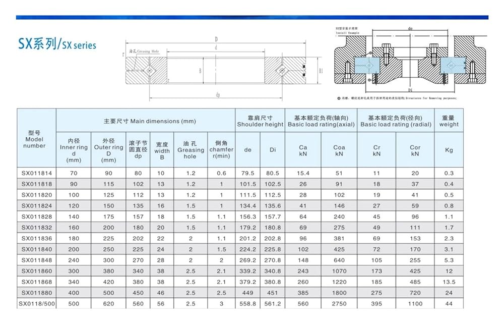 SX011824 Crossed Roller Bearings (120x150x16mm)