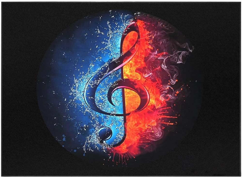 trendy art design: features unique patterns that blend musical notes with dynamic elemental designs, a great present for musicians
