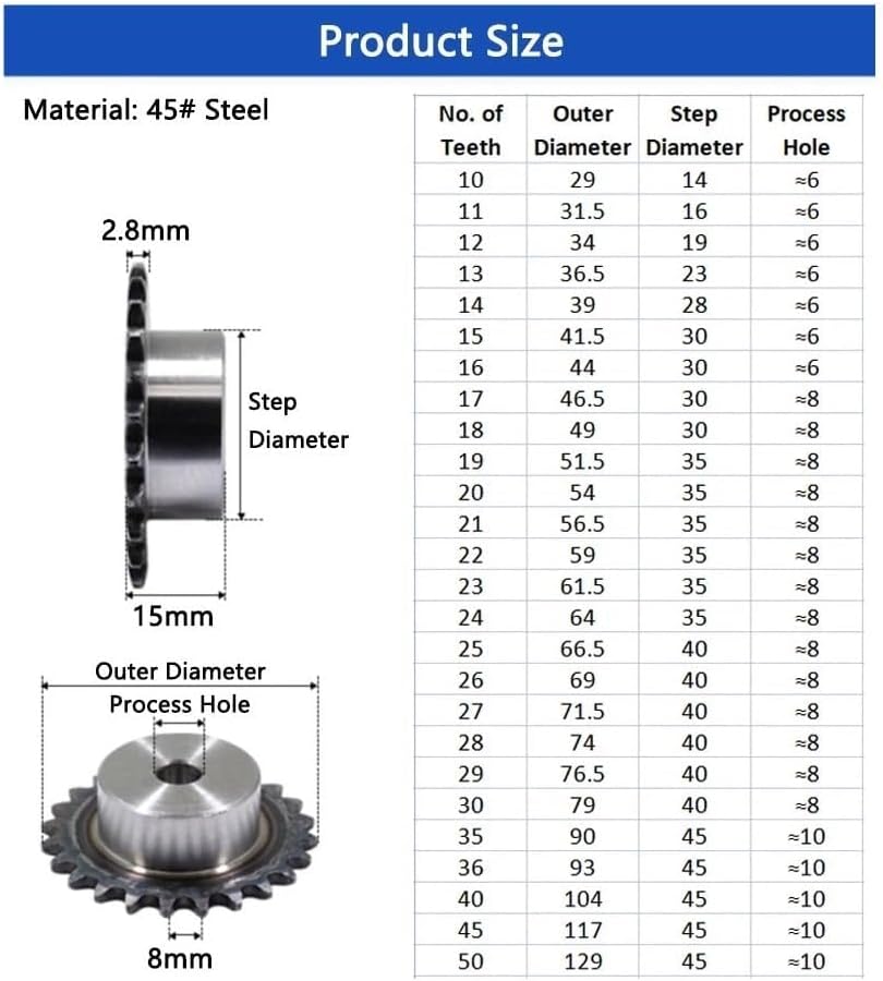 Installation: simple operation, simple manual operation, stable sprocket,Every roller chain sprocket comes with strong teeth that can latch onto the chain.