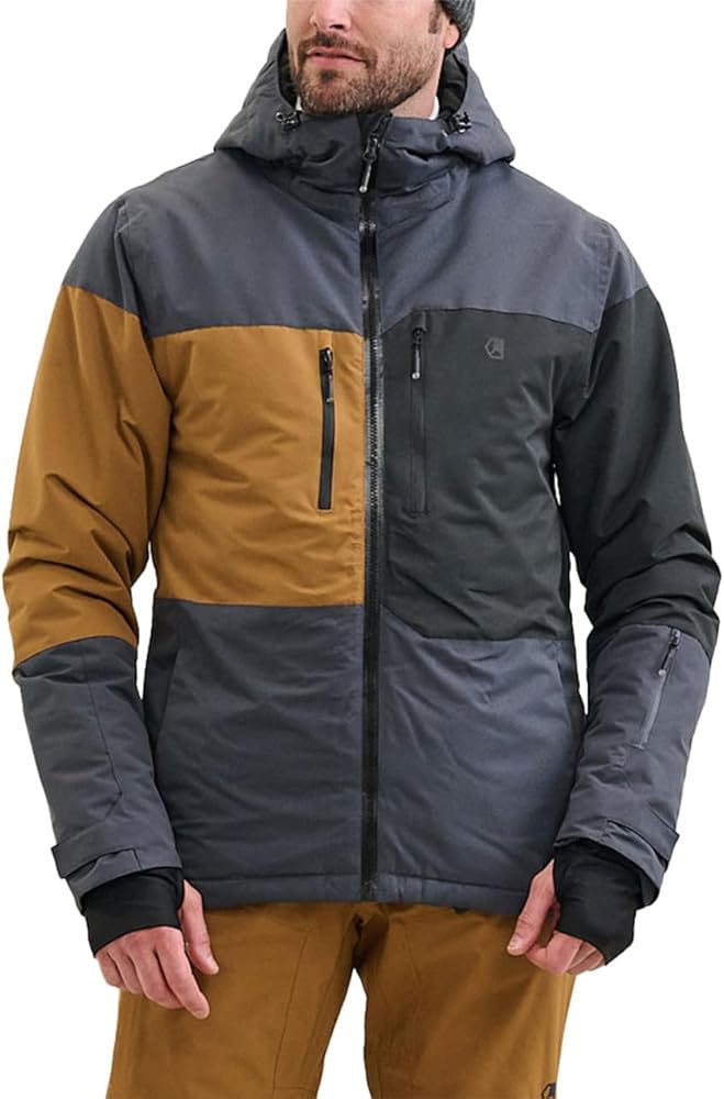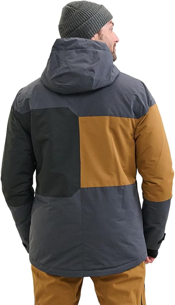 The Liquid Huck Insulated Snowboard Jacket has your back with a great mix of rad color-block style and mountain-ready features. With 120g of 100% recycled Sugenro insulation, it's as eco-friendly as it is comfortable, keeping you warm without weighing you down, and mesh-lined vents provide quick cooldowns when you're slaying it in the terrain park. The 10K waterproof fabric, critically taped seams, and a waterproof front zipper are ready to handle whatever winter throws your way. The attached hood, adjustable cuffs, and thumbhole wrist gaiters keep the snow out when exploring fresh snow in the backcountry. The waist pockets, chest pocket, inside mesh goggle pocket, and sleeve ski pass pocket keep your essentials close when you're riding from the first chair to the last run.