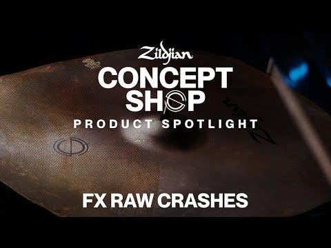 "The Raw Crash is a cymbal like no other – unrefined and completely unique. With a short and explosive crash, it also works as an alternate ride that is dry and cutting. Vetted in the Zildjian Concept Shop and now available worldwide, FX Raw Crashes are the most unrefined and funky cymbals we've ever produced! Each Raw Crash starts from Zildjian's secret alloy, but is not hammered, lathed or trimmed, creating a sound and look that's unlike any other cymbal. A cymbal like no other. Raw crashes are not hammered or lathed, which gives each a highly irregular profile and an unrefined surface. They are also not trimmed into a perfect circle, resulting in odd shapes, sizes (max 24” in diameter), and a naturally coarse edge. Altogether, these variations in profile, shape, size and edge consistency are what create the wildly individual sounds from one crash to the next that make these cymbals so special. Unleash an unrefined sound. These cymbals open up easily, producing beautiful dry crashes with great cut, then drop out of the mix, allowing punchy accents and clear stick patterns. The small bell version of the Raw Crash delivers a controlled and dry sound, with less pronounced overtones. The large bell Raw Crash is a bit more open, with a more pronounced bell sound. Both versions offer a focused sound with plenty of stick to compliment any style, making them an excellent choice for an alternative ride cymbal! Their low shapes make them ideal for moderate volume settings where less projection is needed. A completely individual look. Aesthetically, each Raw Crash will feature streaks, splotches and swirls of varying colors. These are created when the hot metal is tempered, and over time, will continue to develop. Some Raw Crashes may show stretch marks from rolling, tool marks and scratches from moving the hot blanks, chalk marks indicating cup location and oven number, and other telltale signs of their journey through the foundry. These are purely visual features that occur naturally in the process, and don't affect sound or longevity in any way."