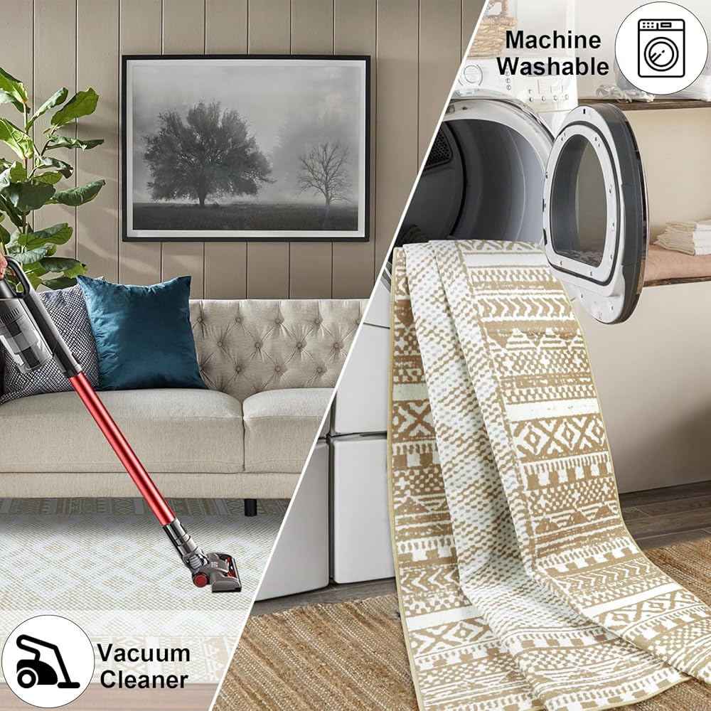 [غير قابلة للانزلاق وغير قابلة للتساقط] تتميز سجاد المنطقة المغربية لدينا بظهر مطاطي TPE عالي الجودة غير قابل للانزلاق، مما يضمن وضعًا ثابتًا ويمنع الانزلاقات الخطيرة (يحافظ على الجزء السفلي من السجادة جافًا). لا حاجة لدفع ثمن وسادة السجاد الإضافية. منسوجة بخبرة مسطحة بدون سطح كومة وحواف معززة، هذه السجادات غير قابلة للتساقط تقريبًا، مما يجعلها مثالية لمن يعانون من الحساسية.