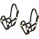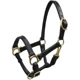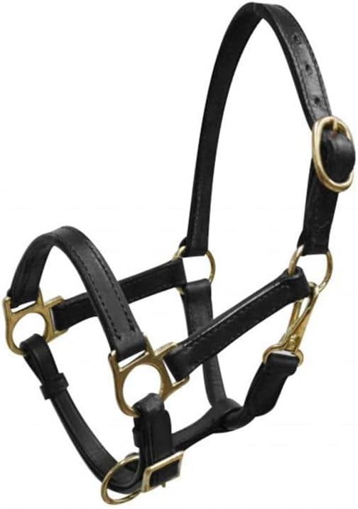 Small Pony/Weanling Leather Halter w/ Brass Hardware. This leather halter features an adjustable crown, an adjustable nose and comes with throat latch. Available Colors: Dark Brown & Black.