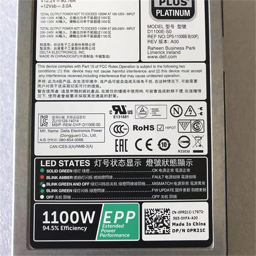For R530 R630 R730 R730XD 1100W EPP Power Supply D1100E-S0 0PR21C 0CMPGM 09TMRF 0Y3H8J 0Y26KX