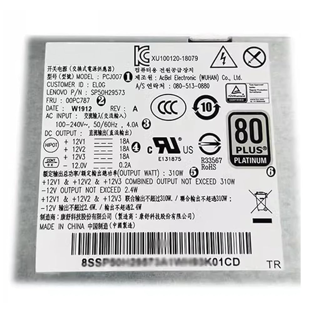 00PC787 PCJ007 SP50H29573 310W لـ M80T M70T M90S P340 P350 P360 SFF G5-14IMB05 مزود الطاقة