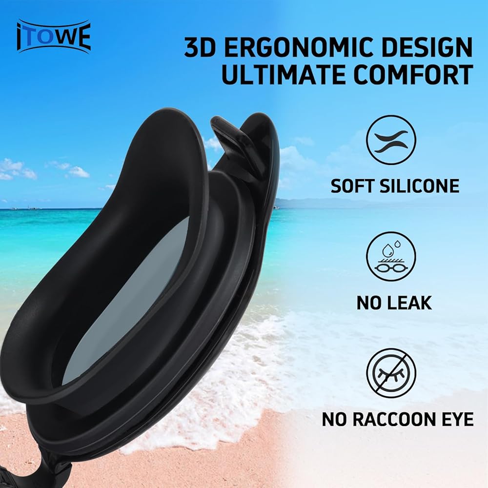 • [Anti-Fog]iTOWE swimming goggles lenses are made of advanced anti-fog treatment technology, which provides you with 180° clear vision, allowing you to be in the underwater world and feel the wonder of the underwater world.