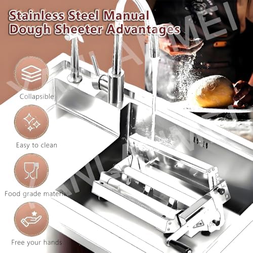 Precision Thickness for Bakery Dough: Adjustable settings with 10 levels (0-25mm) for perfect results, from ultra-thin 0.5mm wonton skins to 25mm pie crusts. Enjoy up to 55 thickness options. Non-stick coated rollers glide effortlessly, transforming sticky dough into smooth sheets—no tearing or sticking, ensuring beautiful layers every time. Ideal for Bakers and Pastry Chefs.