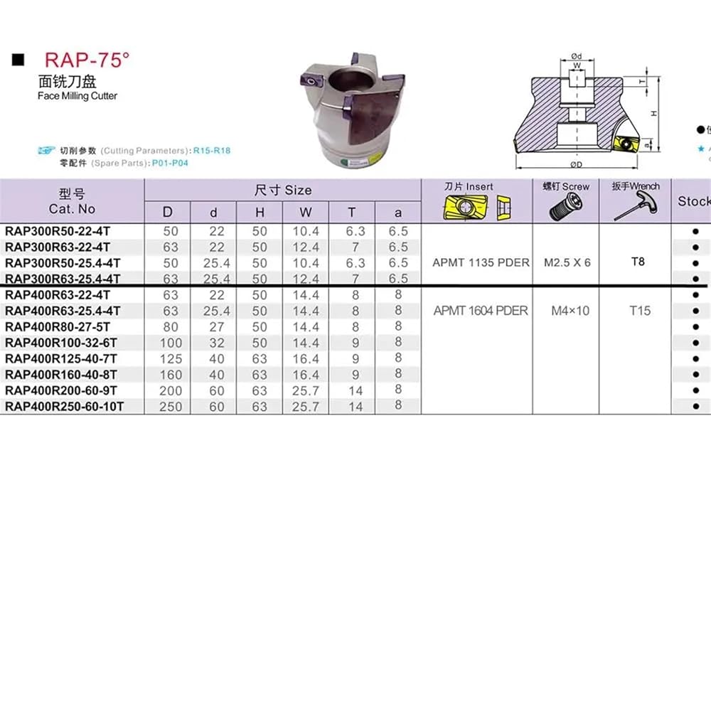 RAP300R 400R Clamped Cutting End Mill 75 Degree Precision Face Milling Cutter 1Pcs