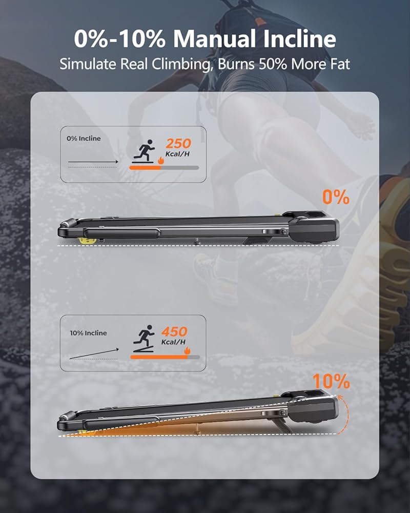 【ما يصل إلى 10 ٪ من المنحدر اليدوي + امتصاص الصدمات】 قم بزيادة الشدة مع ميل قابلة للتعديل يدويًا من 0 إلى 10 ٪ والذي يحاكي التضاريس الشاقة الحقيقية ويحرق 30 ٪ من السعرات الحرارية. حافظ على خطة التمرين الخاصة بك مهما كانت الطقس. بالإضافة إلى ذلك ، فإن نظام امتصاص الصدمات المزدوج (مخمدات المطاط الخلفية + وسادة جانبية من 8 نقاط) وحزام مضاد للانزلاق من 7 طبقات يحمي ركبتيك وكاحليك من الأذى مع الحفاظ على التمارين الخاصة بك هادئة.