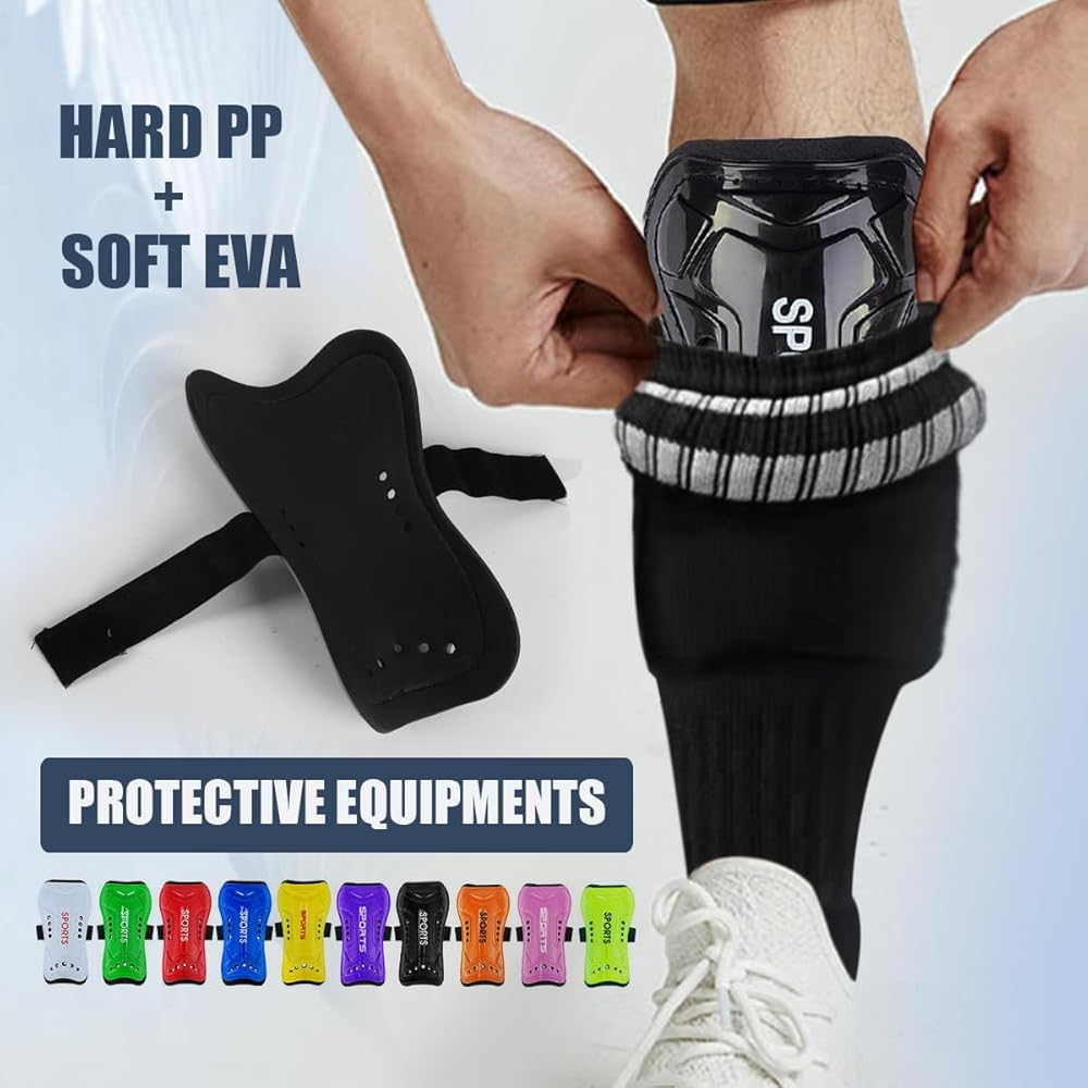 PROFESSIONAL EQUIPMENT : The soccer shin guards have hard plastic layer on the outside that can effectively resist destructive damage from the outside.The inner protective layer can reduce muscle tremor,cushion and disperse the impact so as to reduce the probability of calf fractures and give you effective protection.