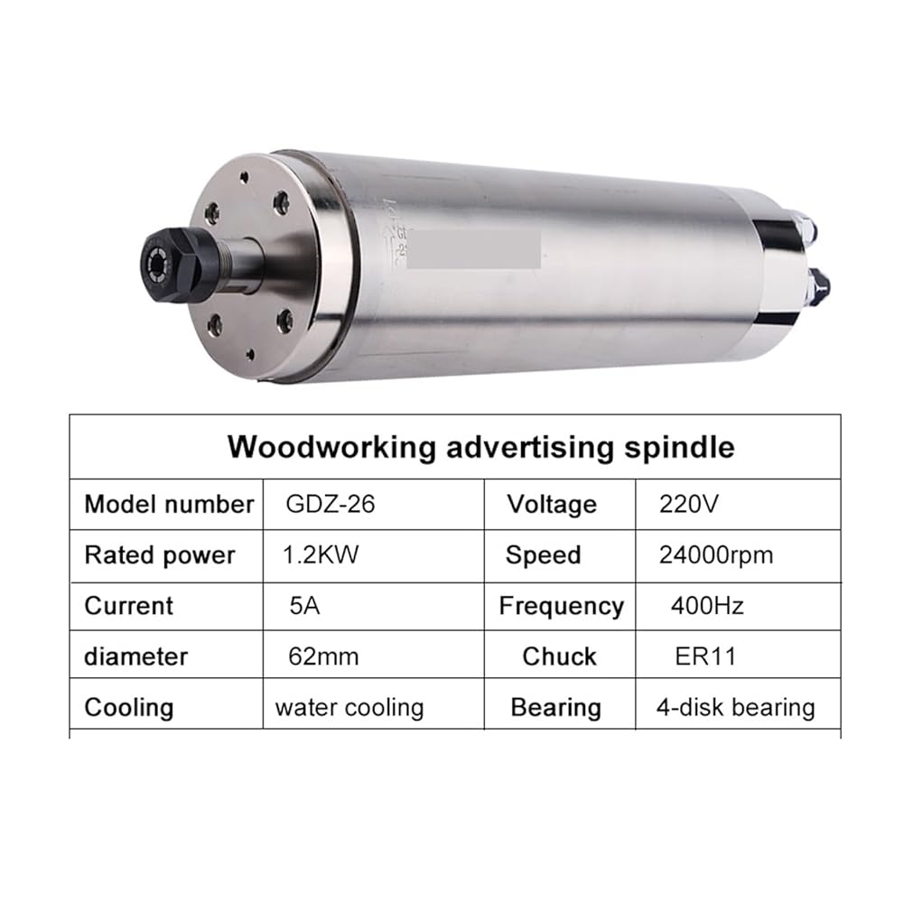 1.2kw ER11 4pcs محمل كرة كهربائية مبردة بالمياه 62 مم عزم دوران مرتفع السرعة (1.2 كيلو وات 24000 دورة في الدقيقة 220 فولت)
