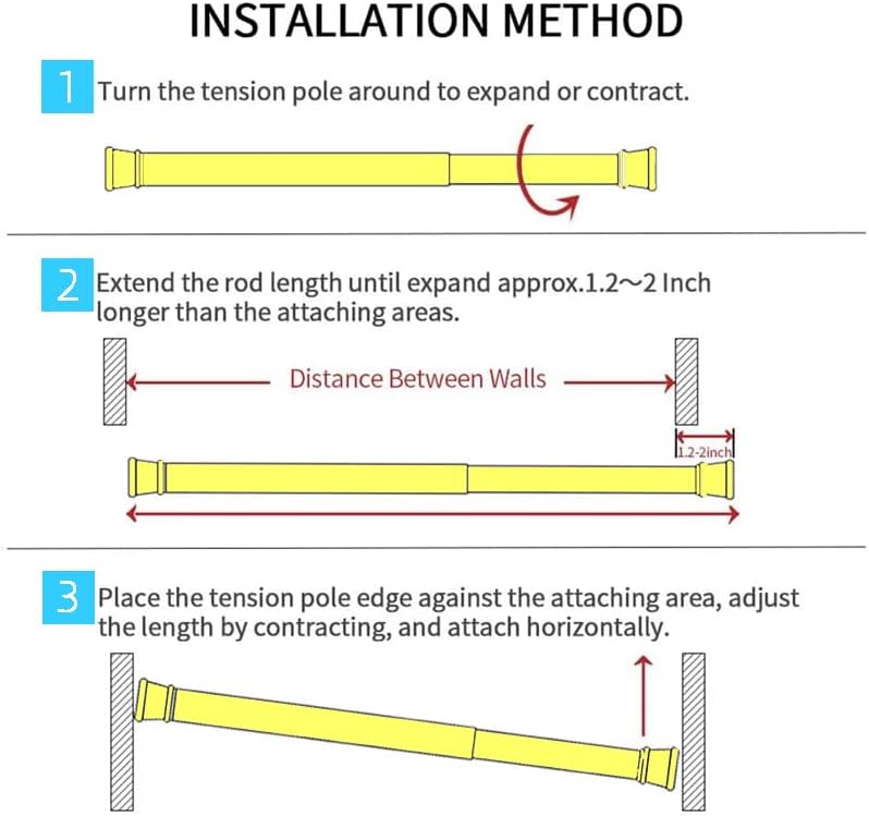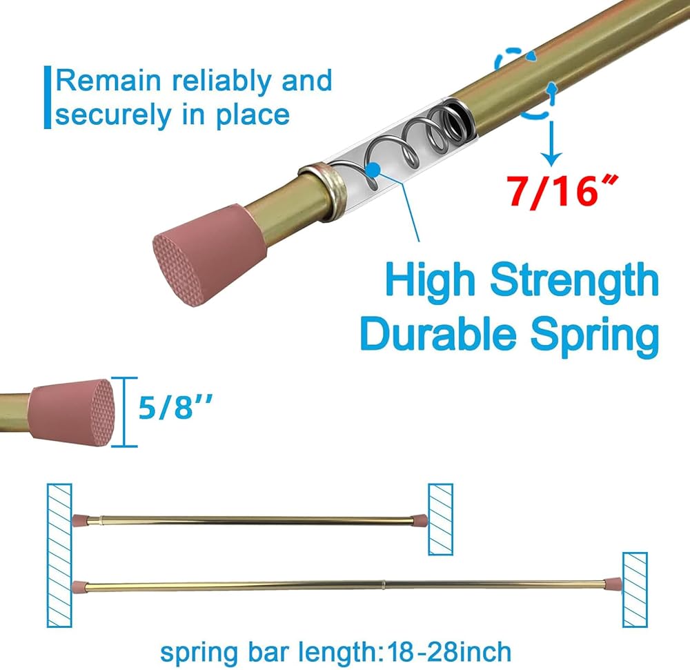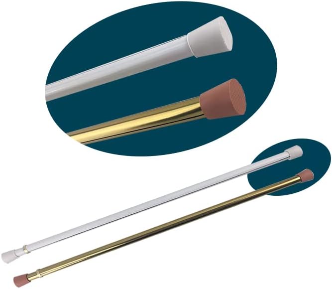 قضيب ستارة بطول قابل للتعديل، قضبان ستائر صغيرة لشد الربيع، قضبان ستائر صغيرة بيضاء قصيرة (نحاس - 14 قطعة، من 18 بوصة إلى 28 بوصة)