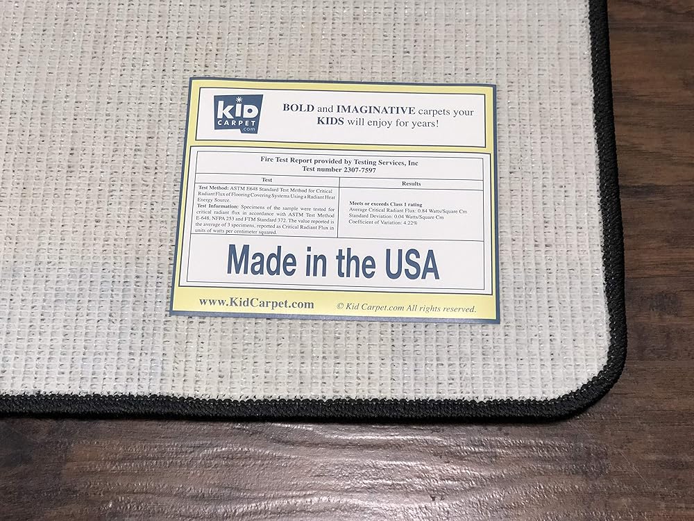 تصنيف حريق من الفئة 1 للاستخدام التجاري - يلبي سجاد KidCarpet.com أو يتجاوز متطلبات الاستخدام في المدارس ومراكز الرعاية النهارية ومرافق رعاية الأطفال العامة