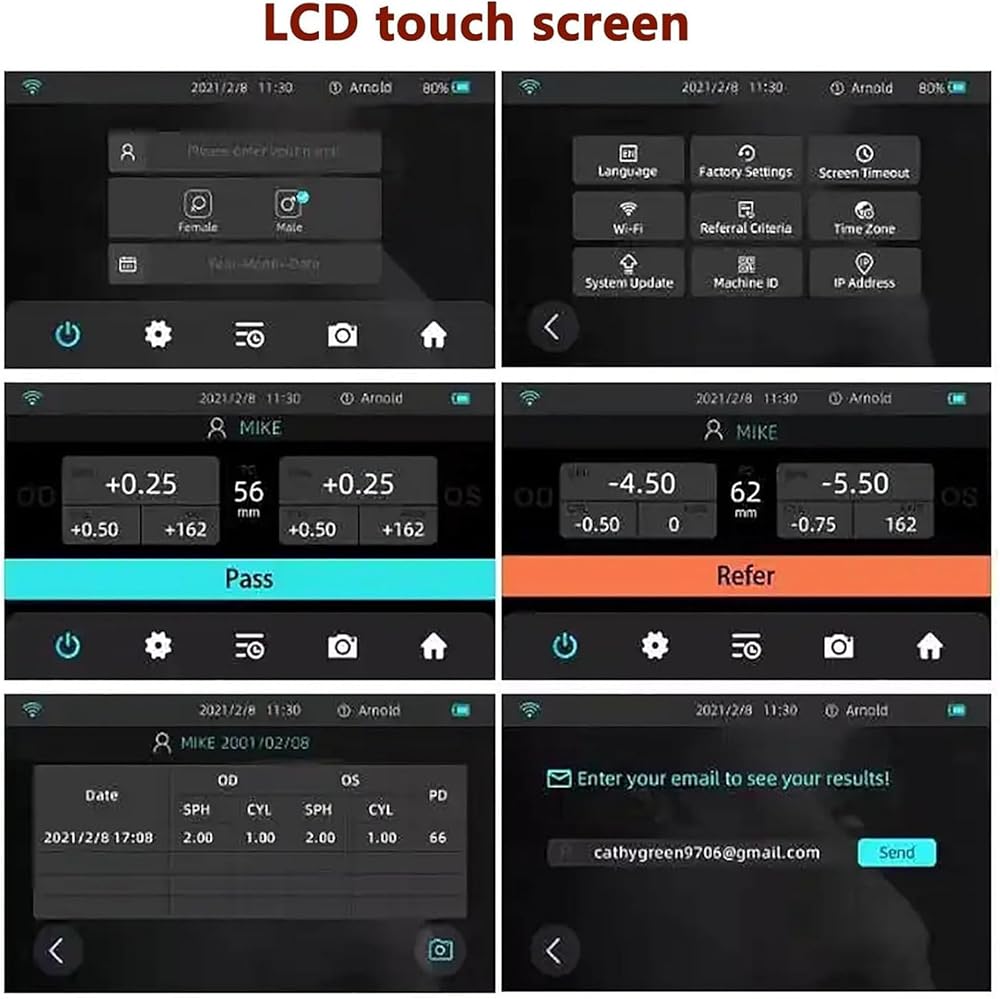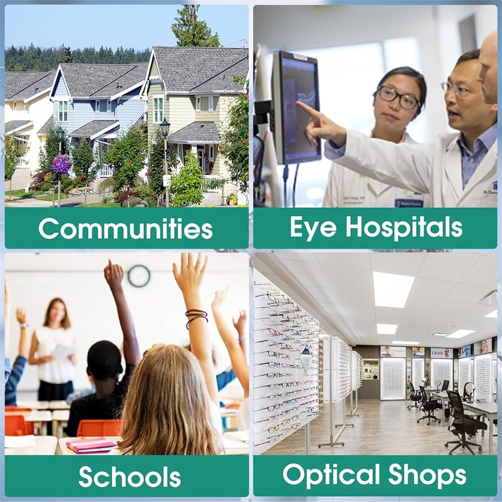 【Precise Screening】The automated screening method completes the entire eye scan with just one click of a button. Completes the entire eye health test and collects binocular refractive status data, including spherical and cylindrical values and pupil distance, suitable for screening at any age
