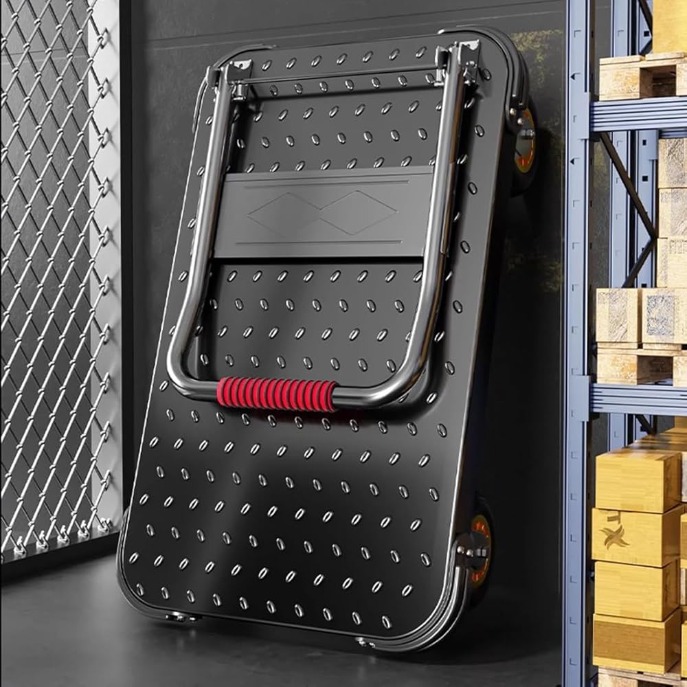 【Easy to use】The platform trolley can be folded and unfolded easily and quickly, so it can be easily stored in the trunk utility compartment or compartment of the car, making it convenient for travel without taking up space. The textured platform surface of the trolley helps prevent the goods from slipping off the vehicle