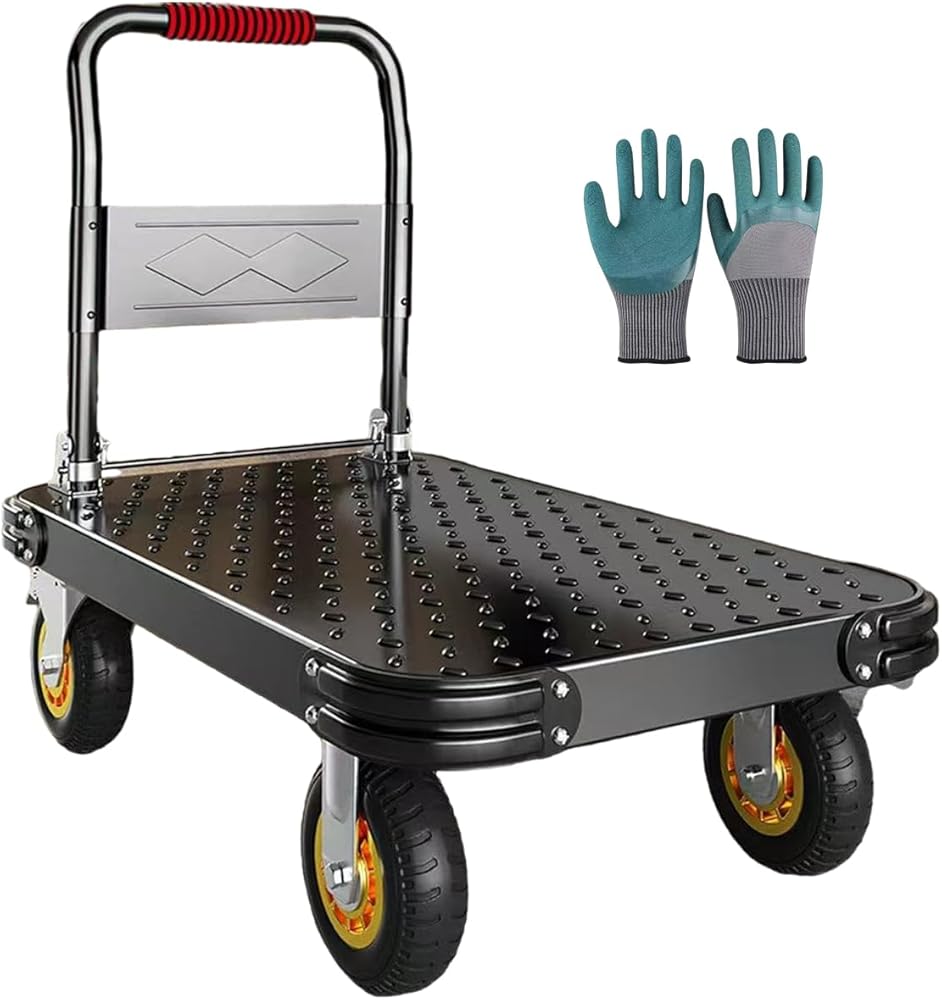 【Widely Used】Whether you are moving household items, cargo, or luggage, this heavy-duty flatbed cart can easily do it. Heavy duty flatbed trucks are ideal for moving bulky, large, heavy things like boxes, furniture, gardening supplies, etc. in your home, warehouse, garage, factory, school, garden, etc.