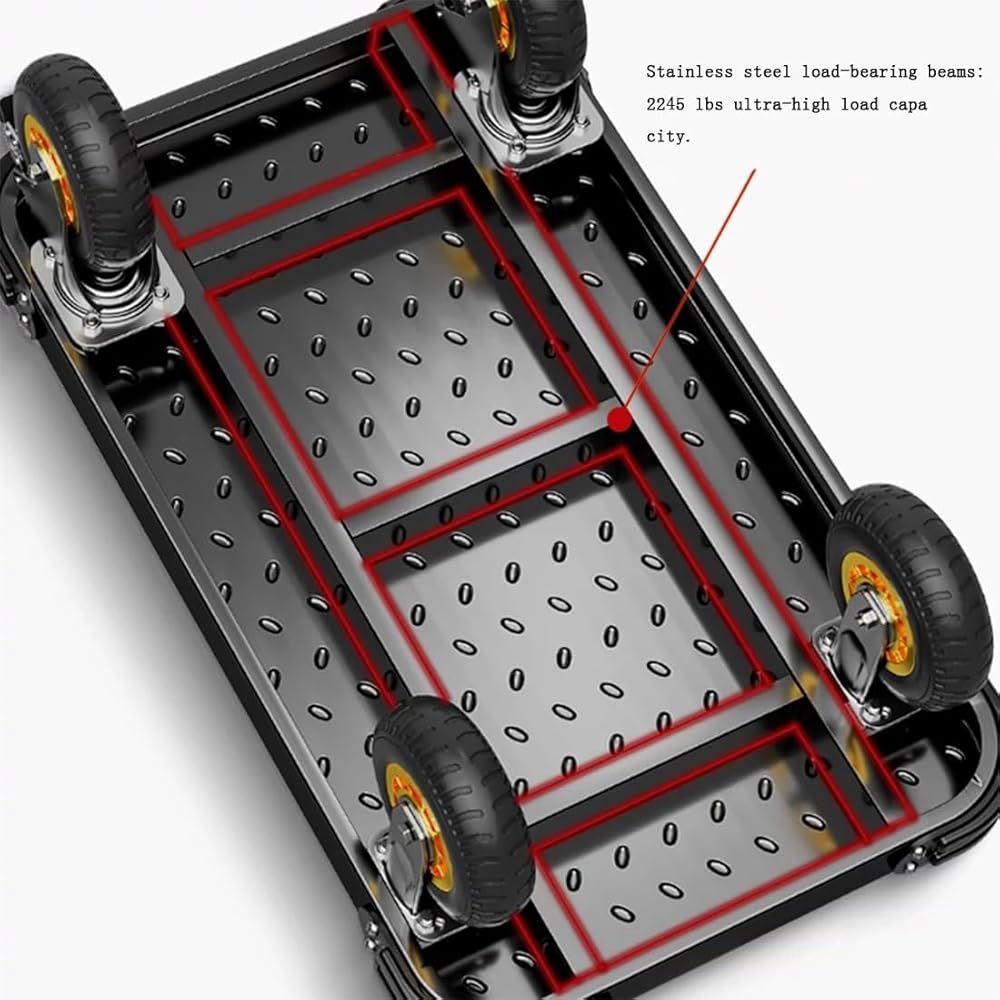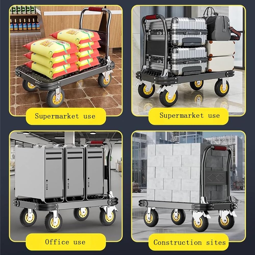 【High Quality Truck] Materia】: Thickened steel plate and handrail.6 inch silent rubber wheels have very strong passability and can pass through potholes without effort. The rear wheels can be rotated 360° effortlessly, making it easy to transport and very practical.