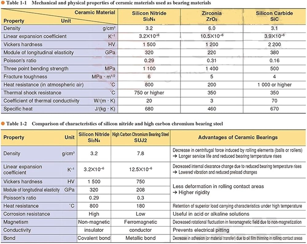 Ceramic Bearings are highly heat resistant enabling a rolling bearing to be practical in a high temperature environment. The low density of ceramic decreases the centrifugal force induced by rolling elements (balls or rollers) contributing to an increased speed of the apparatus.