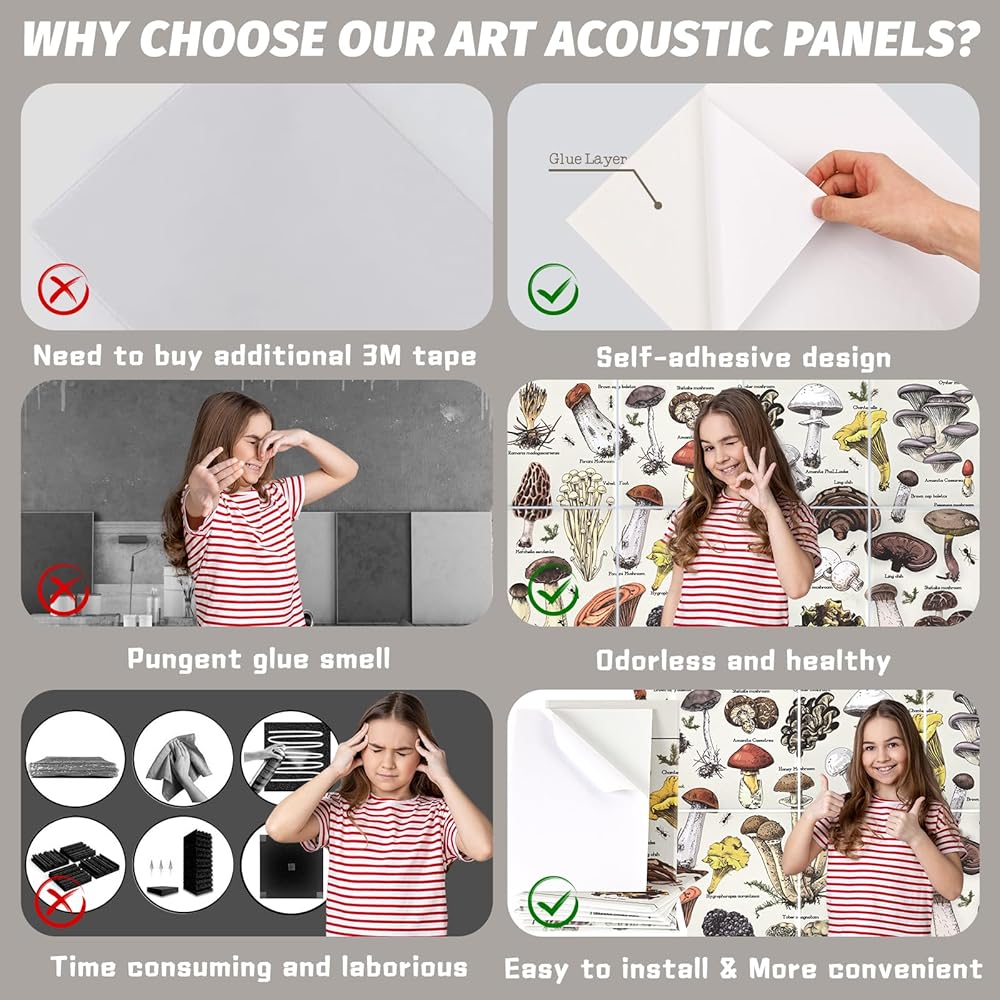 العلاج الصوتي الفعال: لوحاتنا الصوتية الفنية هي 9.4 رطل/قدم 3 ، معامل الحد من الضوضاء:> 0.92 ومعامل الامتصاص: 0.8 ، توفر امتصاص الصوت الاستثنائي ، وتقليل الصدى والأصداء ، وتحسين المؤثرات الصوتية ووضوح الكلام.