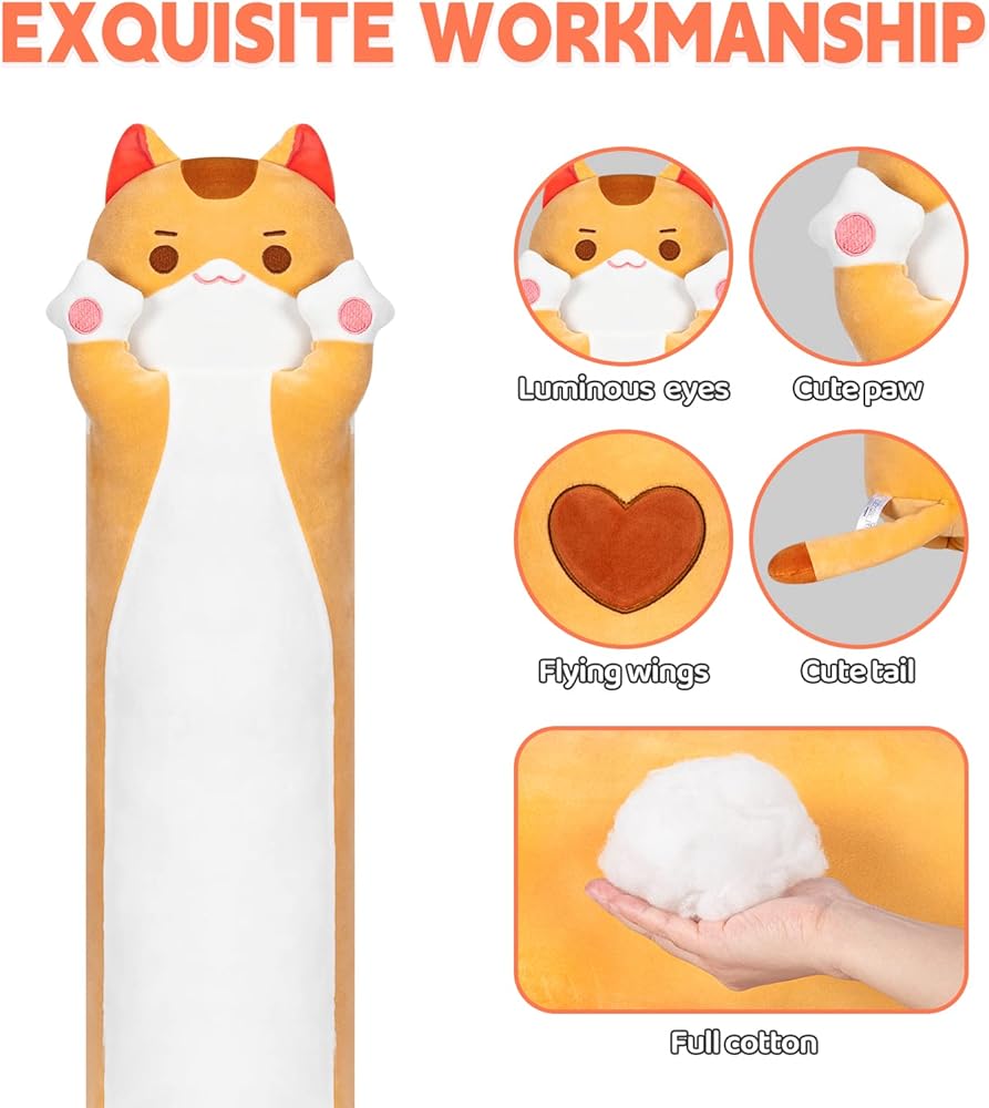 قطيفة قطة برتقالية طويلة فائقة النعومة: لعبة وسادة النوم القطيفة كاواي الخاصة بنا مصنوعة بإتقان من نسيج سباندكس فائق النعومة ومملوءة بالقطن السفلي. عندما تحمله بين ذراعيك، ستشعر بالراحة والمرونة، مع ملمس ناعم وملمس رقيق.