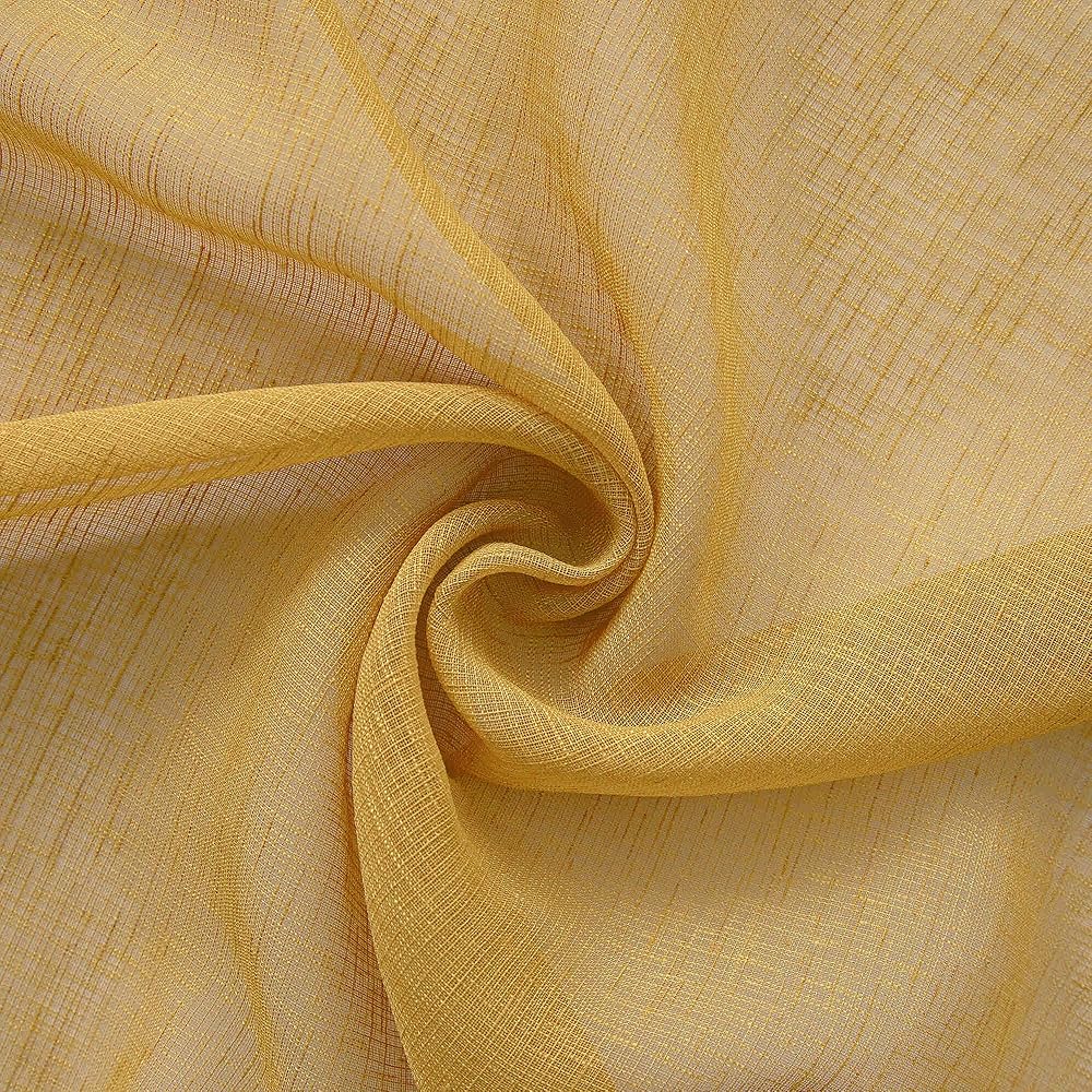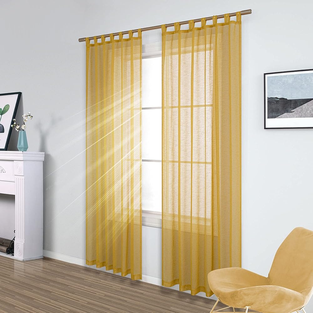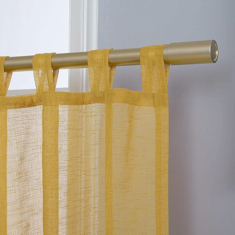 الستائر الذهب الذهب Koufall طولها 84 بوصة لغرفة المعيشة غرفة نوم الضوء الشفافة من الكتان تبدو خردل مزخرف الستائر شبه الشفوية لغرفة الطعام 2 لوحات TAB 52 × 84 بوصات طولها 7ft