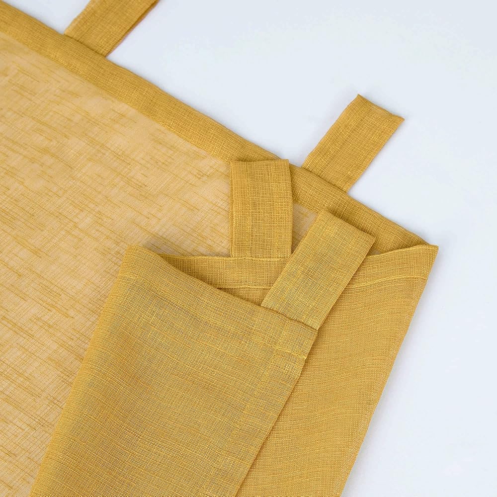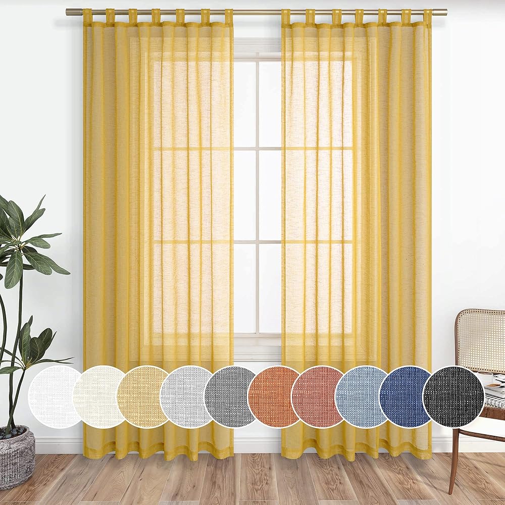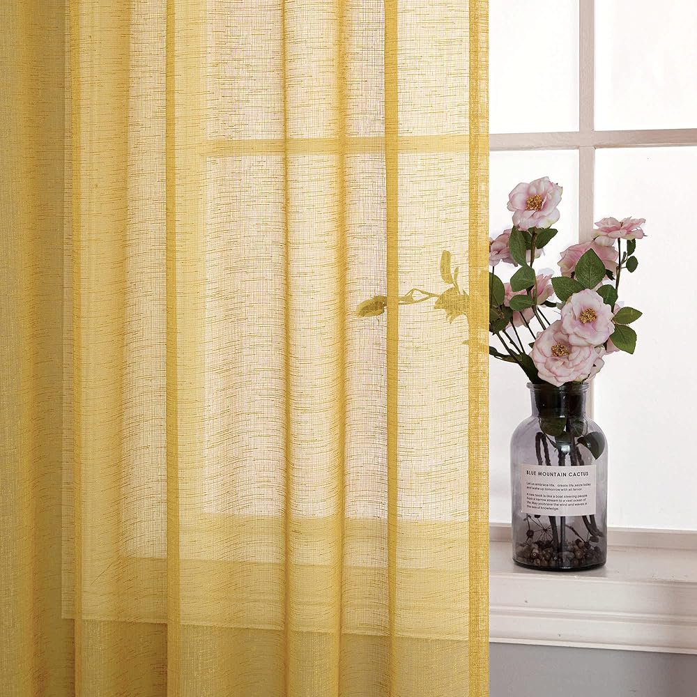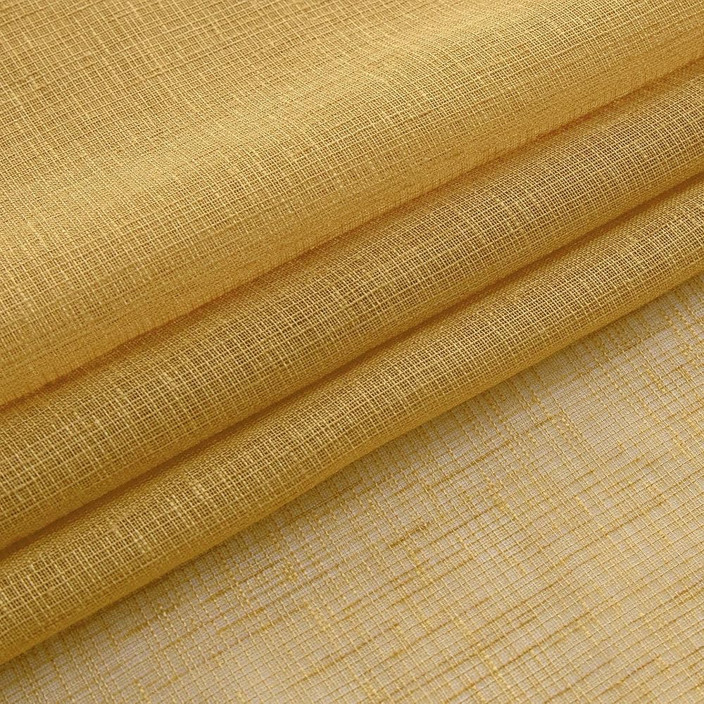 الستائر الذهب الذهب Koufall طولها 84 بوصة لغرفة المعيشة غرفة نوم الضوء الشفافة من الكتان تبدو خردل مزخرف الستائر شبه الشفوية لغرفة الطعام 2 لوحات TAB 52 × 84 بوصات طولها 7ft