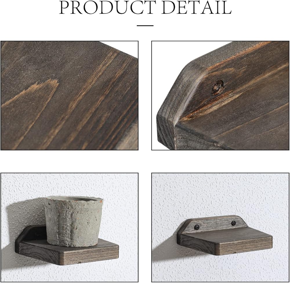 التصميم: أرفف الحائط الصغيرة شبه المنحرفة مصنوعة بنسبة 100% من الخشب الصلب ومصنوعة يدويًا. يوجد برغيان في الخلف لتعزيزه، مما يجعله أكثر متانة. يتميز الخشب المصقول يدويًا بحبيبات خشبية ومظهر كلاسيكي مصنوع يدويًا، مما يجعل الأرفف مثل الطراز الريفي القديم، ويمكن مطابقتها مع معظم أنماط الديكور.