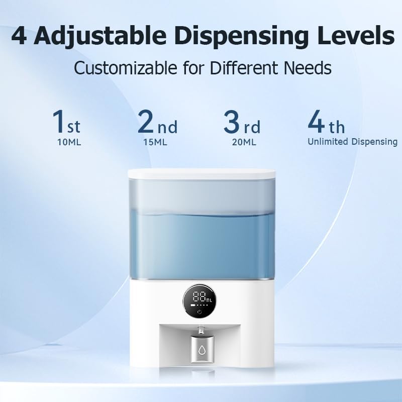 Mottinhill X124 Smart Automatic Mouthwash Dispenser – Premium Touchless Oral Care Solution Product Overview: The X124 Smart Automatic Mouthwash Dispenser revolutionizes bathroom hygiene with its advanced push-to-dispense technology. Designed for modern households, it combines smart functionality with sleek aesthetics, offering 4 precision dispensing modes (10/15/20/Unlimited mL) to accommodate users of all ages. Key Features & Benefits: 1️⃣ Hygienic Touchless Operation Push-activated lever dispenses mouthwash without physical contact Includes 4 color-coded cups (30mL each) for personalized family use 30° angled spout prevents drips and fits all standard cups 2️⃣ Smart Customization 4 adjustable dosage settings via intuitive touch controls LED display shows battery life, water level, and selected mode 500mL transparent tank for easy monitoring and refilling 3️⃣ Long-Lasting & Rechargeable 1800mAh battery provides 75 days of use per charge USB-C fast charging (full charge in 2 hours) IPX4 waterproof rating withstands bathroom humidity 4️⃣ Flexible Installation Strong adhesive mount for tiles/glass (48-hour cure time) Screw-mount option for added security Compact 184×136×50mm design saves counter/wall space 5️⃣ Premium Construction Detachable tank for easy cleaning Electroplated lever with rust-resistant finish Technical Specifications: Capacity: 500mL (18.26oz) Dispensing Modes: 10mL / 15mL / 20mL / Unlimited Battery: 1800mAh (USB-C rechargeable) Dimensions: 184×136×50mm Waterproof Rating: IPX4 Included Accessories: 4×10mL cups, charging cable, mounting hardware Why Choose X124? ✅ Family-Friendly Hygiene – Color-coded cups and touchless operation prevent cross-contamination ✅ Worry-Free Maintenance – Detachable tank and wide mouth simplify cleaning ✅ Space-Saving Design – Wall mount placement adapts to any bathroom Ideal For: Households seeking contactless oral care Parents needing child-friendly dosing Travelers appreciating compact portability