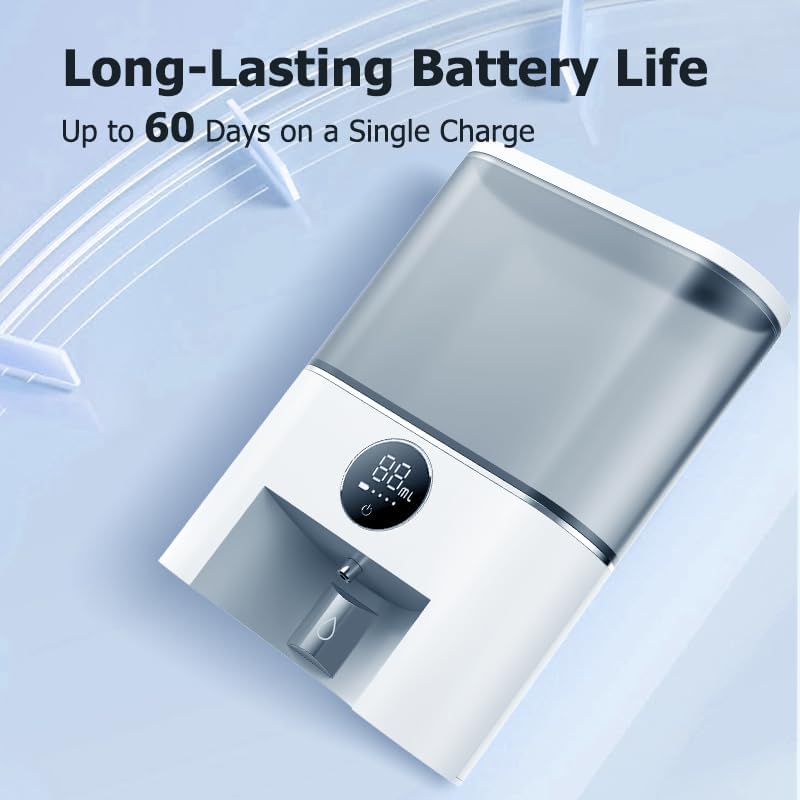 • 3️⃣𝟒 𝐀𝐝𝐣𝐮𝐬𝐭𝐚𝐛𝐥𝐞 𝐃𝐨𝐬𝐚𝐠𝐞 𝐌𝐨𝐝𝐞𝐬 + 𝐋𝐄𝐃 𝐒𝐦𝐚𝐫𝐭 𝐃𝐢𝐬𝐩𝐥𝐚𝐲: Powered by a long-lasting battery, this dispenser runs up to 75 days per charge (2-hour full charge via universal Type-C port). The auto-sleep mode conserves energy, and the IPX4 waterproof rating withstands bathroom splashes!