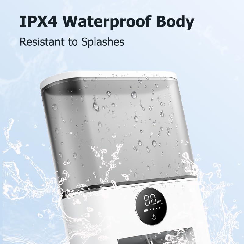 • 5️⃣𝐒𝐦𝐚𝐫𝐭 𝐌𝐨𝐝𝐞𝐫𝐧 𝐃𝐞𝐬𝐢𝐠𝐧 𝐰𝐢𝐭𝐡 𝐏𝐫𝐞𝐦𝐢𝐮𝐦 𝐅𝐞𝐚𝐭𝐮𝐫𝐞𝐬: The electroplated push lever activates with just a gentle touch for effortless one-handed operation. Our precision 30° angled spout prevents drips while perfectly fitting all standard cups to keep your counter clean. The 500ml wide-mouth detachable tank enables easy filling and thorough cleaning for optimal hygiene. Built with IPX4 waterproof construction, it withstands daily bathroom humidity while protected charging ports ensure durability. Backed by rigorous quality testing, this dispenser delivers reliable performance you can trust.