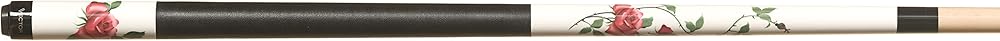 Premium Billiards Cue - The Caliber C8 is built with a white pearl colored maple forearm and sleeve and adored with a Rose design.