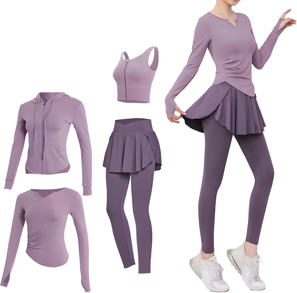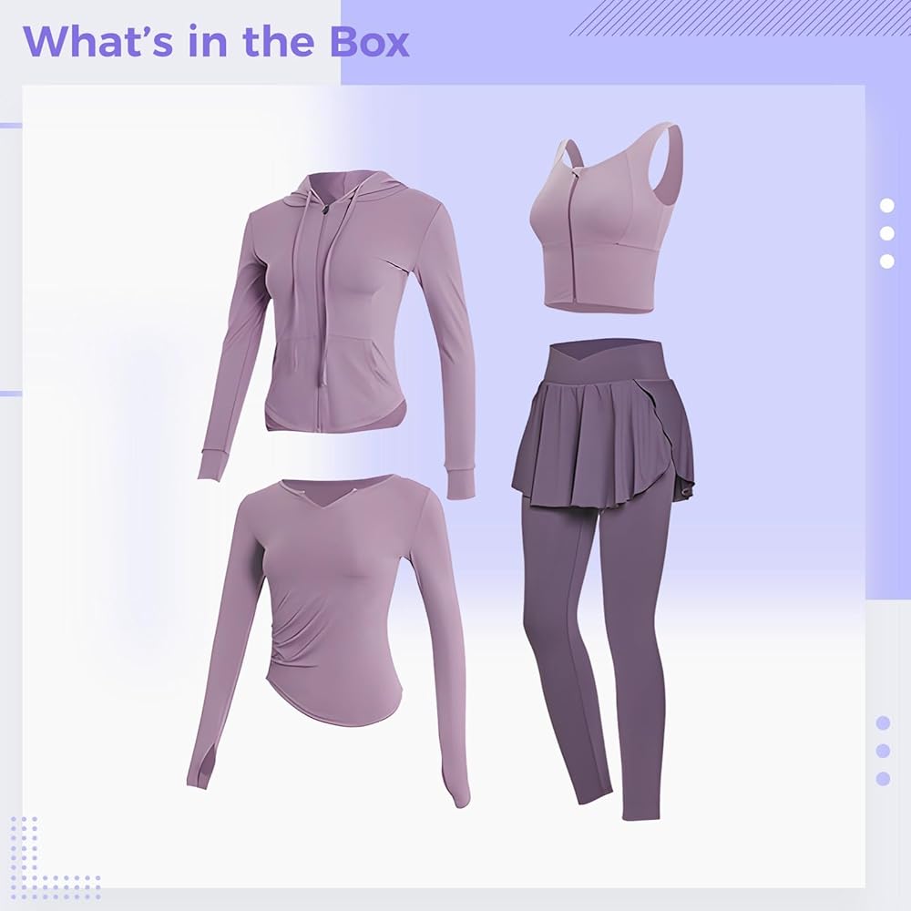 adaptable 4-piece set: create various outfit combinations with jacket, sports bra, long sleeve top, and pants; adjusts to all weather conditions