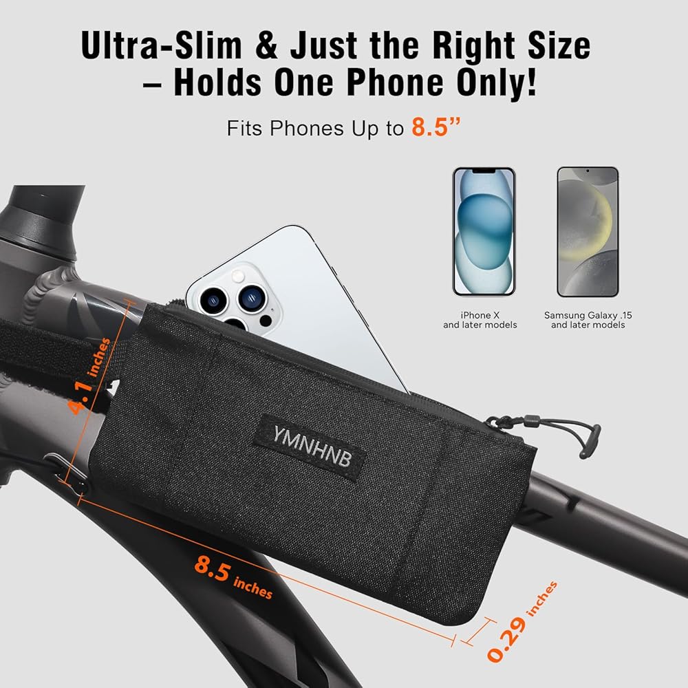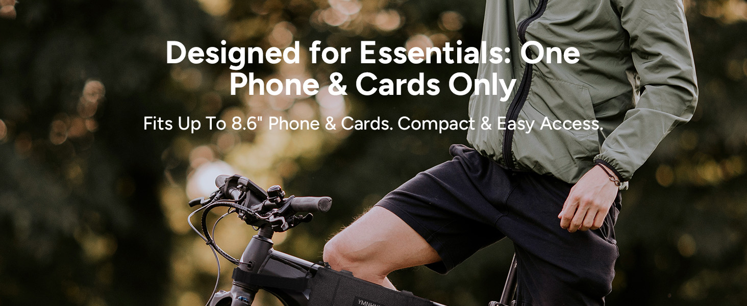 • تخزين الحد الأدنى للضروريات-مصممة خصيصًا لركوب الخيل القصيرة ، تحتوي حقيبة إطار الدراجة المدمجة على هاتف ذكي واحد وبطاقات 2-3 فقط. إذا كان هاتفك أصغر ، فقد تناسب ملحقات صغيرة مثل سماعات الأذن.