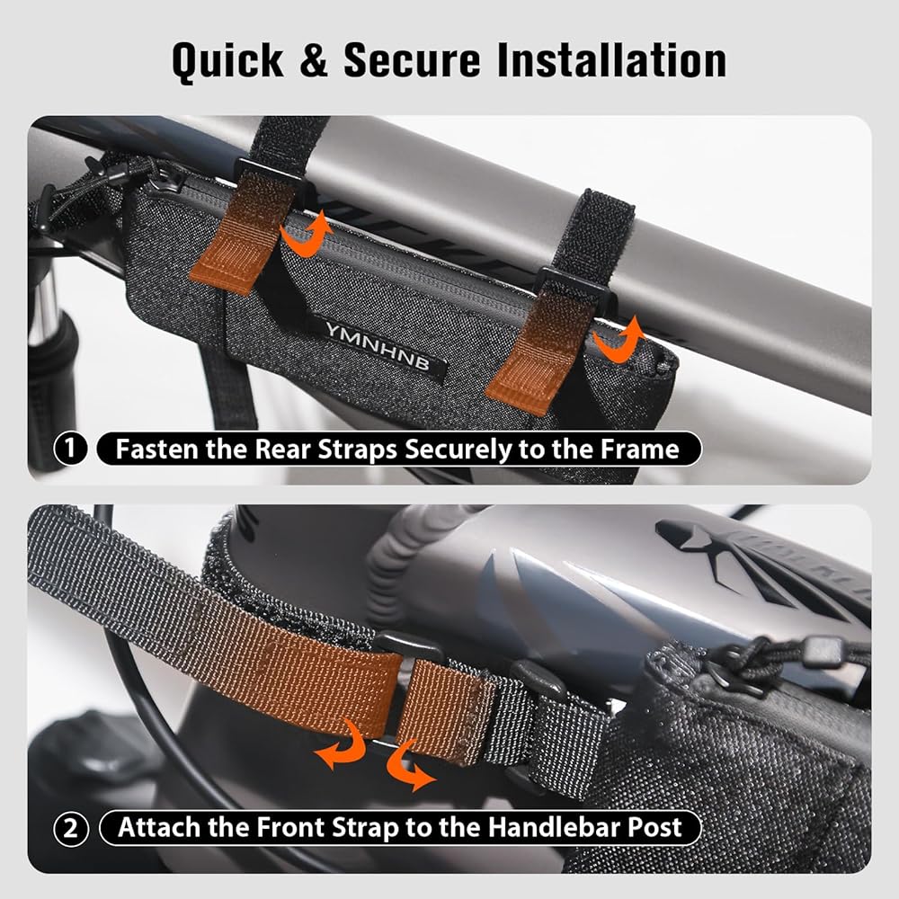 • التثبيت السهل والآمن - مزود بثلاثة أشرطة قابلة للتعديل ، تعلق كيس الدراجة هذه بقوة على أنبوبك العلوي ، مما يضمن الاستقرار حتى في ركوب الخيل الوعرة.