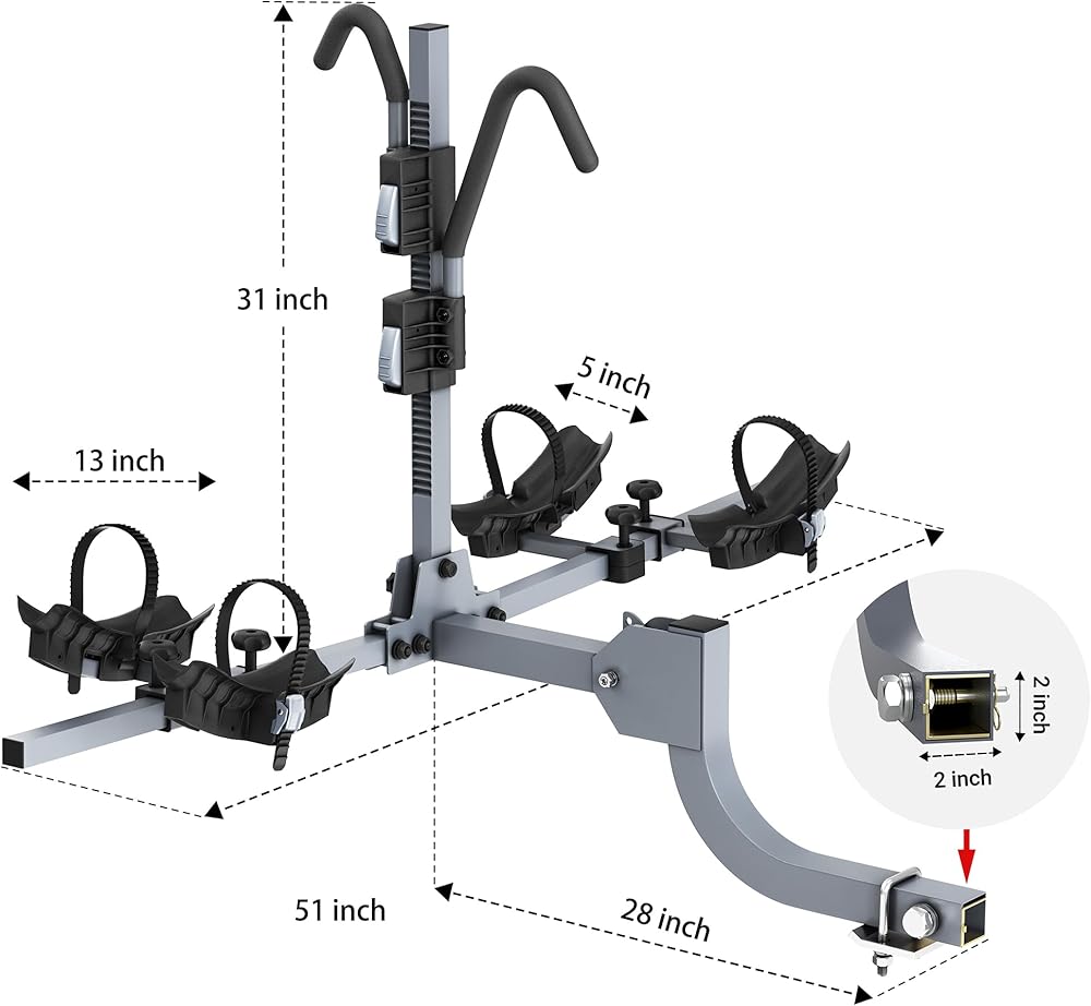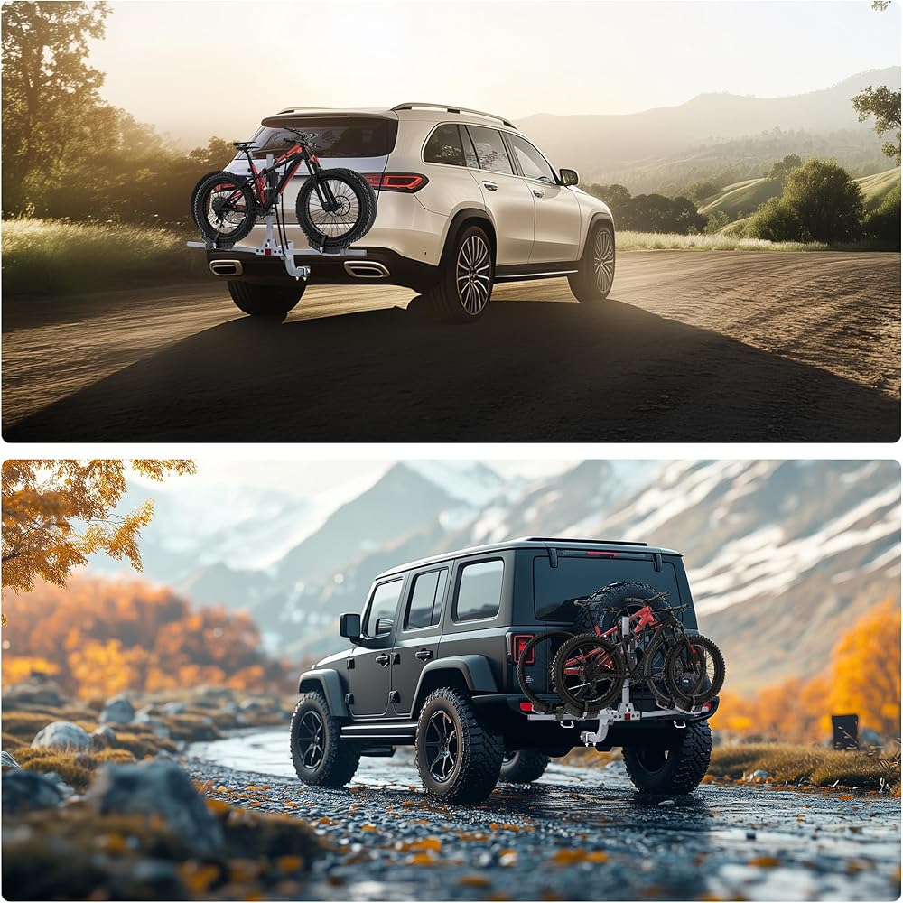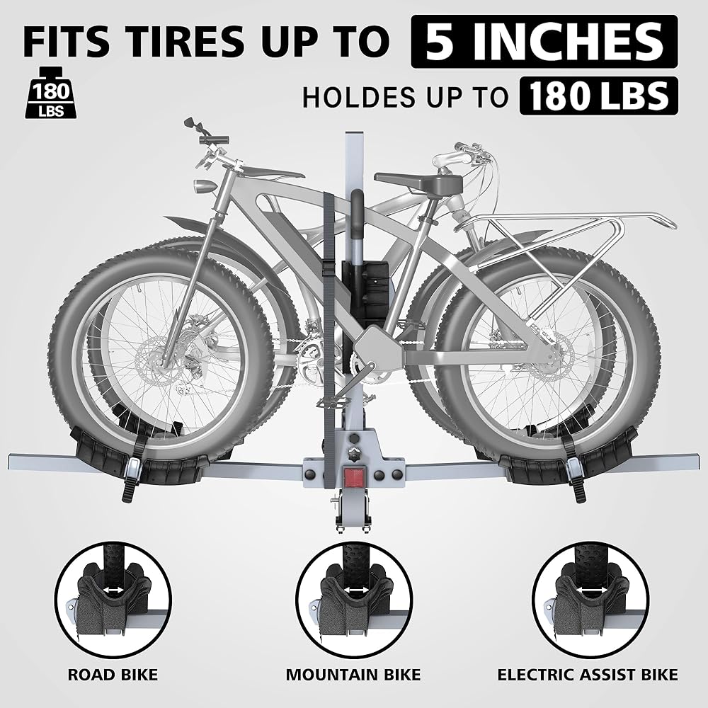 رف ثنائي الدراجة: رف دراجة في طريق الطريق السريع المصنوع لسيارات الدفع الرباعي ، شاحنة ، مركبة على الطرق الوعرة مع 180 رطلاً. سعة التحميل. يمكن تحميلها بالدراجات القياسية والدراجات الشاقة والدراجات الجبلية والدراجات على الطرق ، ويتناسب التصميم بشكل مريح على حد سواء إطارات الدراجات الضيقة والعريضة.