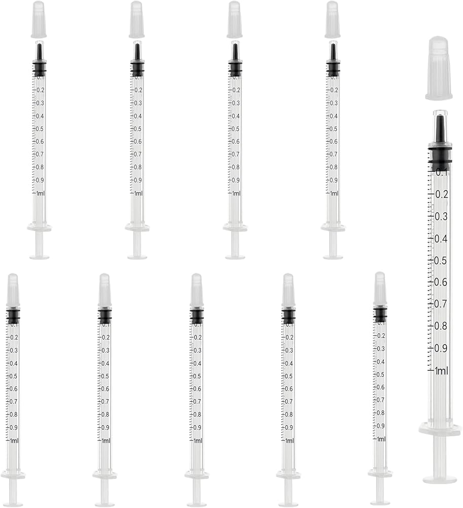 1.Storinge بدون إبرة مع CAP: سوف تتلقى 10 أجهزة كمبيوتر محاقن 1 مل (بدون إبر) ، ولكل منها غطاء لسهولة تخزين السوائل من أجل السلامة والتنظيف