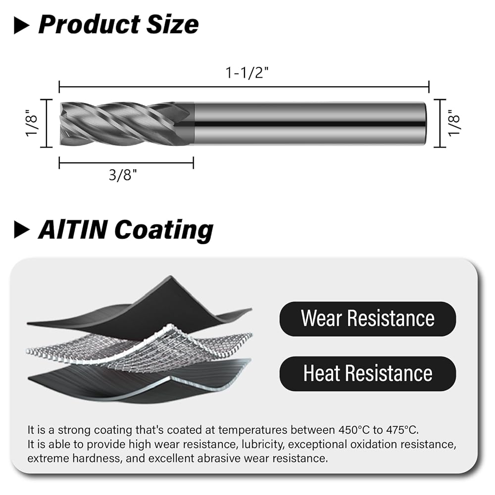 • شملت الحزمة: 3pcs 1/8 "4flute Carbide End Mill. دعاوى للطحن الجانبي ، الطحن النهائي ، طحن الخطوة ، طحن القمار ، إلخ.