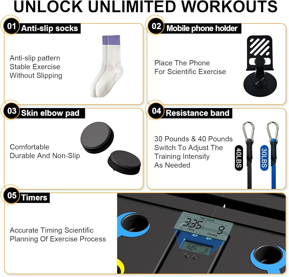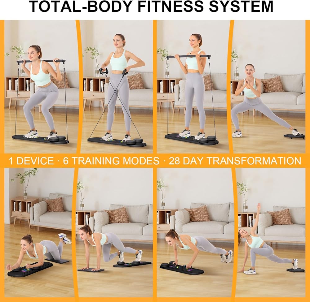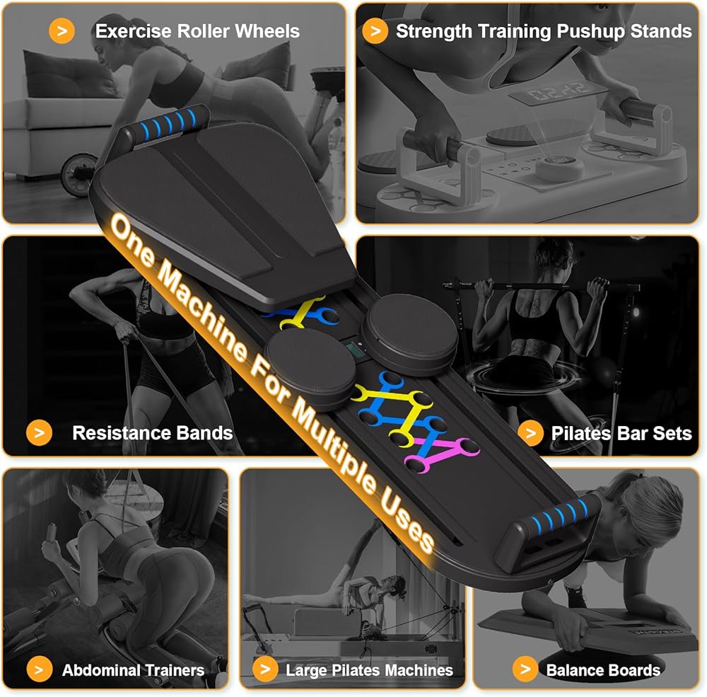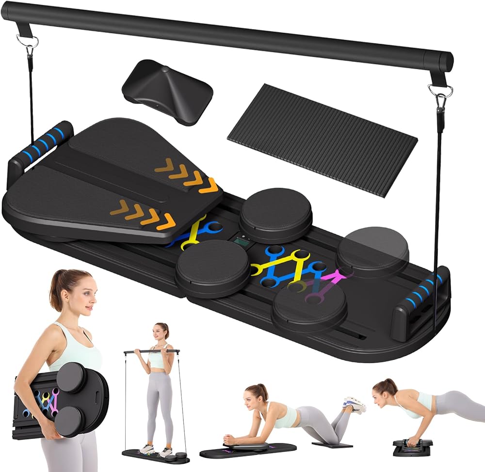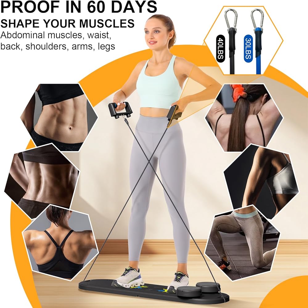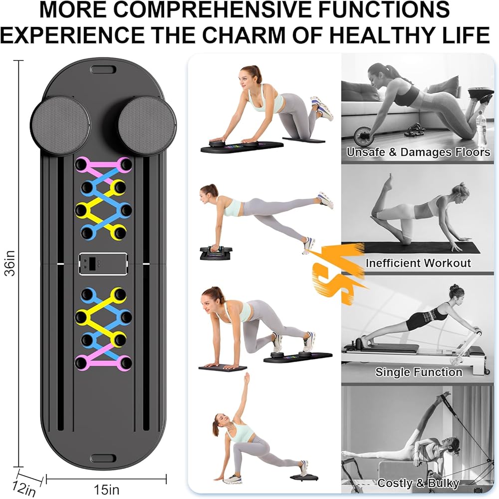 مجموعة بيلاتيس ريفورمر - لوح بيلاتيس ريفورمر قابل للطي، لوح بيلاتيس للتمرين المنزلي، جهاز تدريب أساسي للبطن محمول، لوح بيلاتيس ريفورمر - معدات تمرين لكامل الجسم للمنزل
