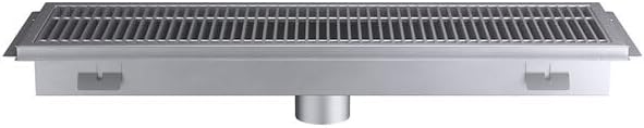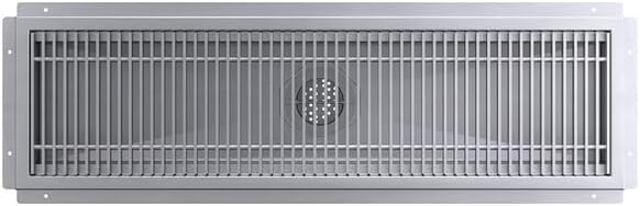 GRATING DESIGN: Features removable subway-style grating with 9/16-inch spacing between bars, allowing smooth liquid flow while supporting equipment rolls