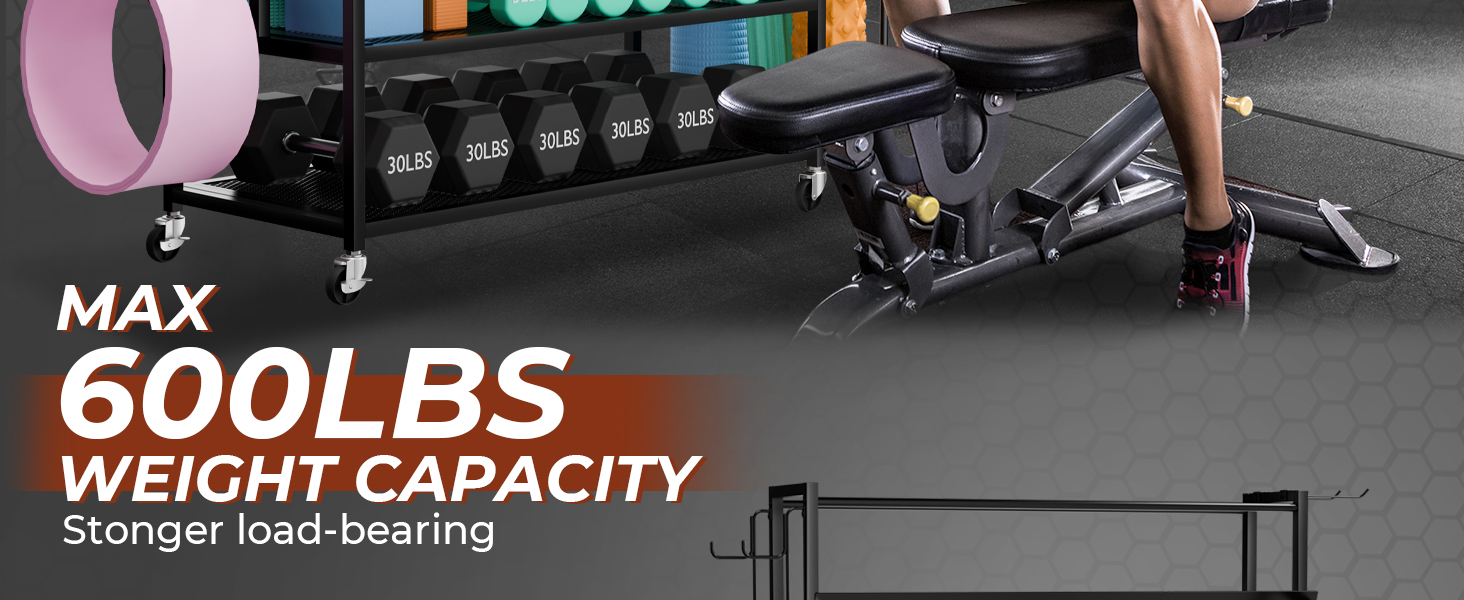 【سعة Largr إضافية-مزودة بأربعة طبقات من رفوف تخزين المعادن ، يمكن أن يخزن رف تخزين الصالة الرياضية المنزلية مجموعة متنوعة من الدمبل وغيرها من معدات التمرينات التي يتم نشرها ككتلة اليوغا.