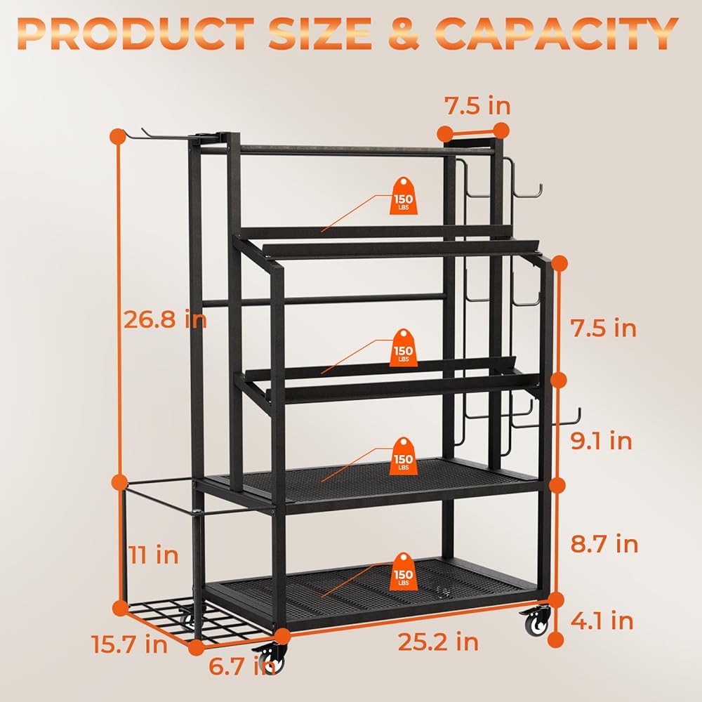 【قوي وسهل التحريك】 يضم 4 عجلات متعددة الاتجاهات متينة (بما في ذلك 2 قابلة للقفل) ، يمكن نقل رف الوزن هذا بسهولة في أي مكان تريده وقفله. أيضًا ، قمنا بترقية عملية اللحام للعجلات السفلية لجعلها أكثر استقرارًا ، حتى لا تنكسر حتى عند تحميلها بالكامل.