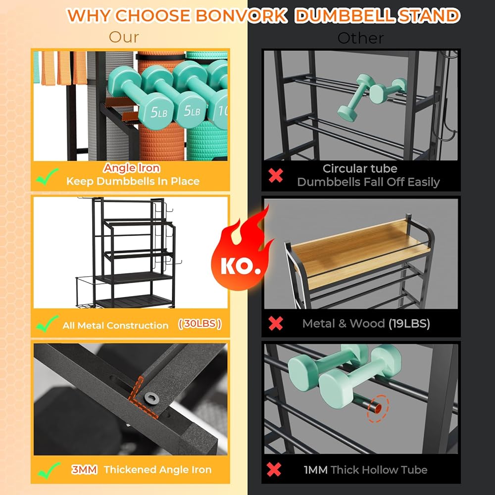 【يناسب جميع أحجام الدمبل】 مع التصميم القابل للتعديل عرضًا ، يناسب رف الوزن ثنائي الطبقات للدمبلات الدمبل المختلفة ويجعل من السهل الوصول إلى الدمبل. أيضًا ، يمكن أن يحمل تصميم أنبوب الصلب ذو الشكل 3 مم "L" على شكل الدمبل في مكانه ، مما يمنعهم من السقوط عند الهز أو تحريك رف تخزين الصالة الرياضية المنزلية. يمكن أن تصل كل طبقة إلى 150 رطلاً.