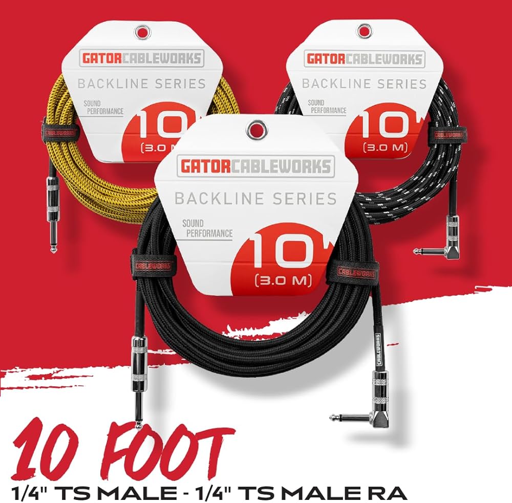 The Cableworks Backline Series GCWB-INS-10RABRD is a 10-foot braided instrument cable designed for exceptional sound clarity and long-lasting durability. Equipped with classic 1/4" connectors, it provides a secure, reliable connection for both live performances and studio recordings. The 6.5mm jacket enhances flexibility and protection, and the braided black/red design offers a touch of style and a vintage vibe. Inside, a 23-gauge, 99.99% oxygen-free copper conductor and copper spiral shielding work together to minimize interference and maintain a clean, noise-free signal. Whether you're a professional musician or an everyday player, the Backline Series instrument cable delivers consistent, high-quality performance you can depend on.