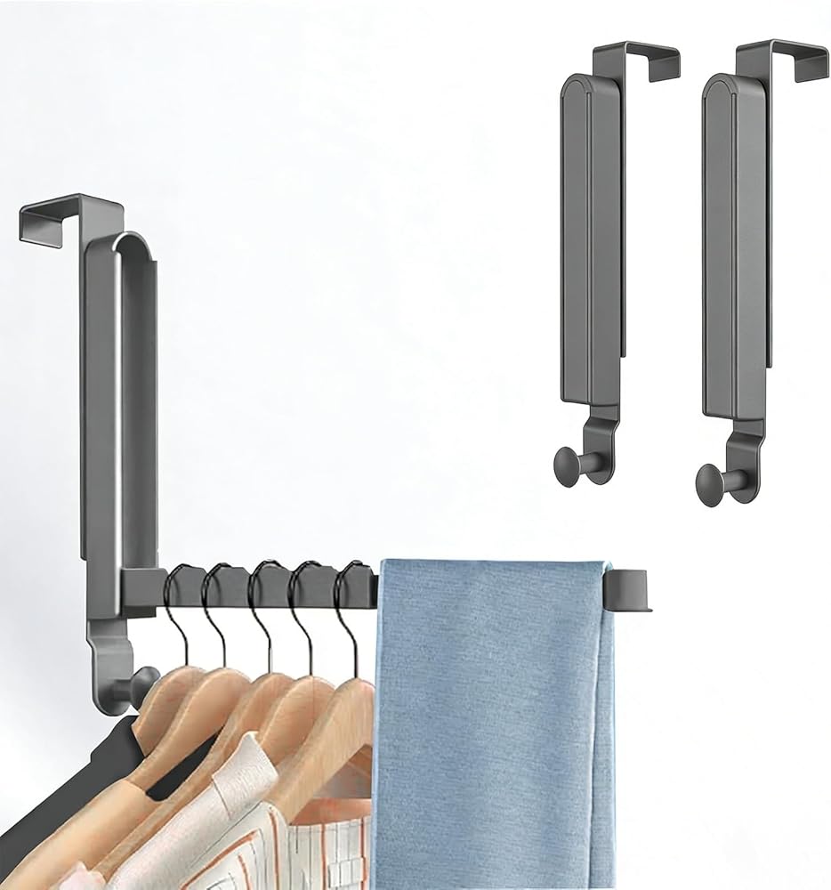 • قضيب تعليق معلق قابل للتعديل: يمكن تمديد كل شماعات قابلة للطي على الباب 5.9 بوصة ، ويمكن تعديلها وفقًا للاحتياجات. والتي يمكن أن تعلق عناصر متعددة في نفس الوقت ، وتوفير المساحة وسهلة الاستخدام.