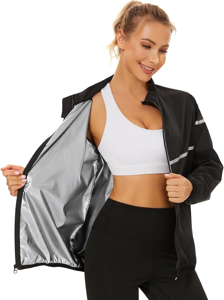 التصميم الأنيق لبدلة العرق: تتميز بدلة العرق الخاصة بنا للنساء بتصميم أنيق ، مما يضيف لمسة من الموضة لارتداء اللياقة البدنية. هذا لا يبدو رائعًا فحسب ، بل يوفر أيضًا الرؤية أثناء التدريبات المنخفضة الضوء.